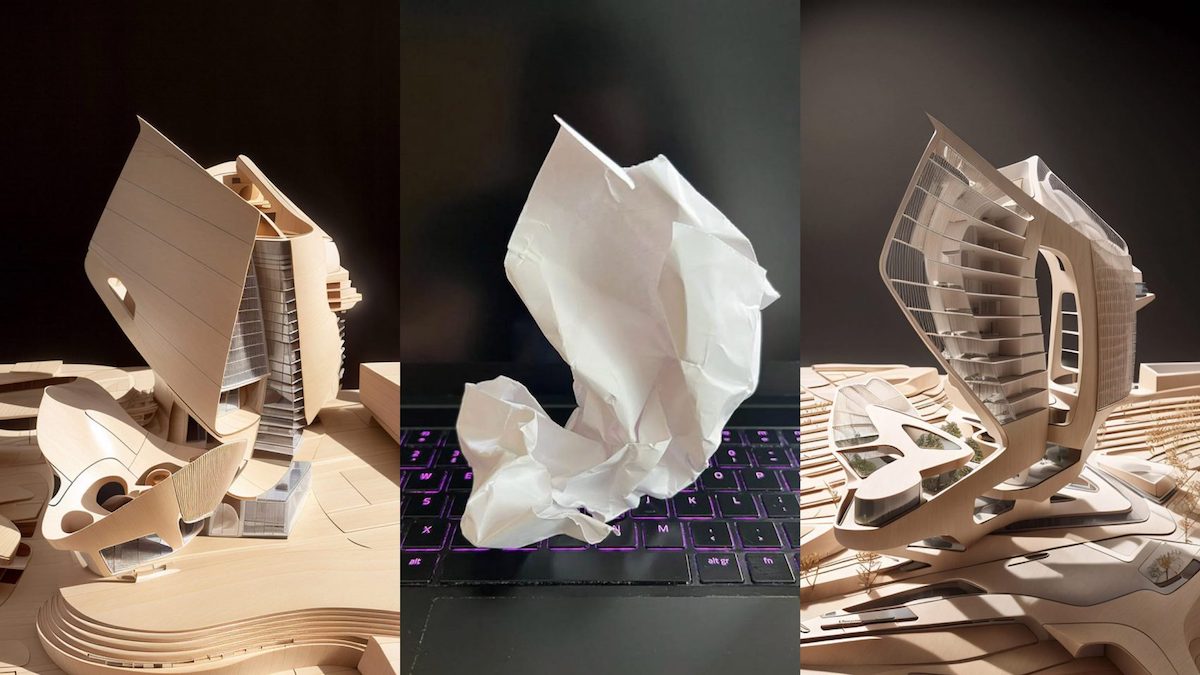 Дизайнер Тім Фу використав LookX для перетворення зім’ятого папірця на макет будівлі у стилі SANAA. Зображення: Tim Fu