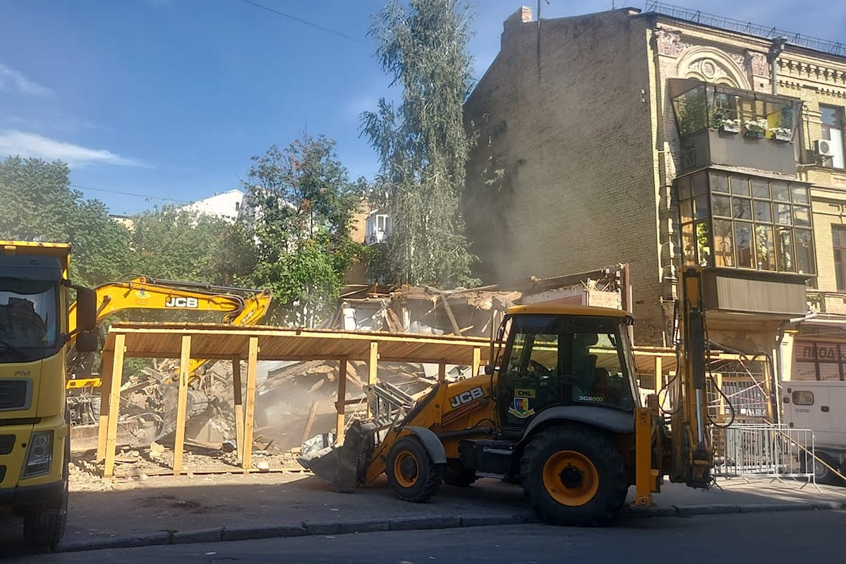 О п’ятій годині ранку 10 серпня, відразу після закінчення повітряної тривоги, на Ярославській 13,Б, що на київському Подолі, повністю знесли 200-річний дерев’яний будинок. Фото опублікувала Катерина Бутко.