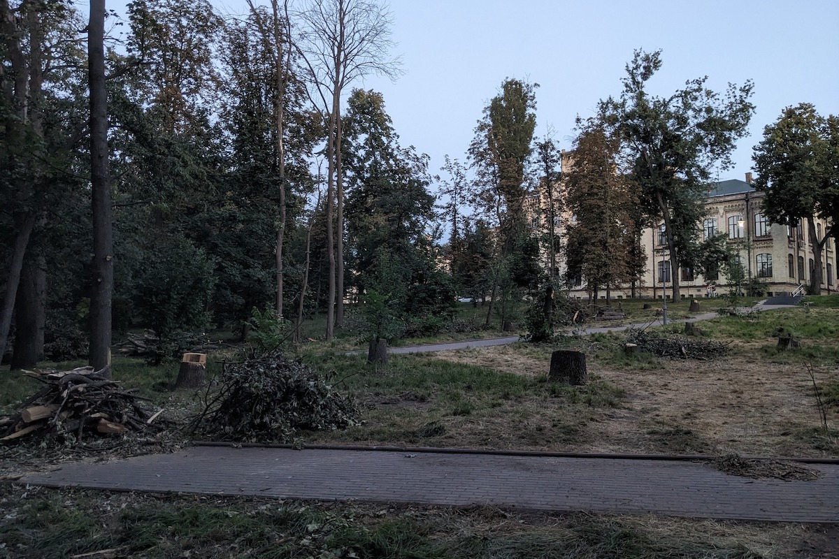 У парку КПІ працівники Київзеленбуду вирізали ділянку, де росли ясени. Фото опублікував киянин Кирило Виноградов.