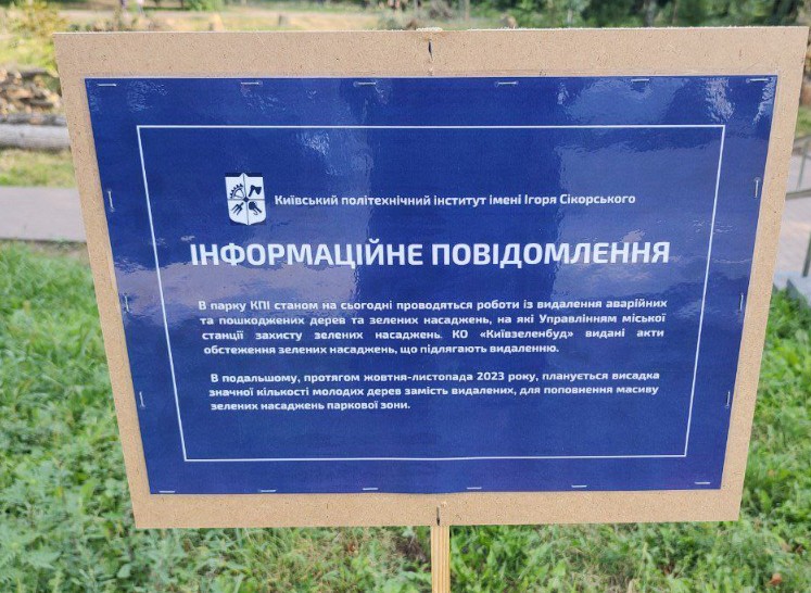Арборист Володимир Ветроградський повідомив «Хмарочосу», що кілька років тому помітив, що стовбури пенсильванських ясенів у парку КПІ активно заселяє інвазивний стовбуровий шкідник. Саме через це й загинула більша частина дерев.