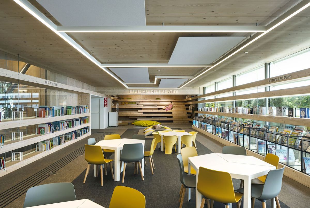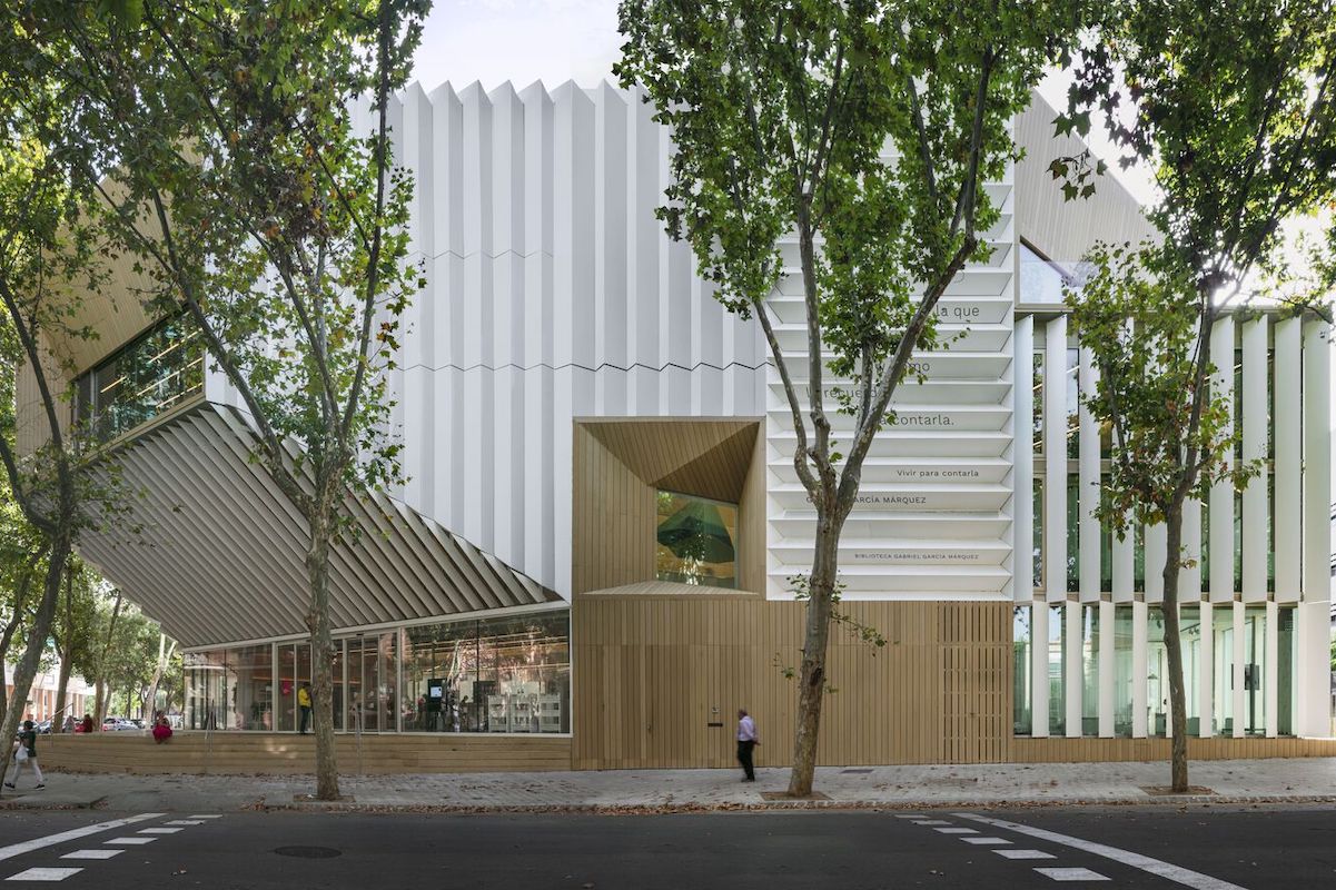 Бібліотеку Маркеса звели торік за проєктом SUMA Arquitectura в районі Сант-Марті. У фасаді архітектори використали як базу рівчачок — елемент, який часто зустрічається в міському просторі Барселони. Загалом будівля нагадує стос книг.