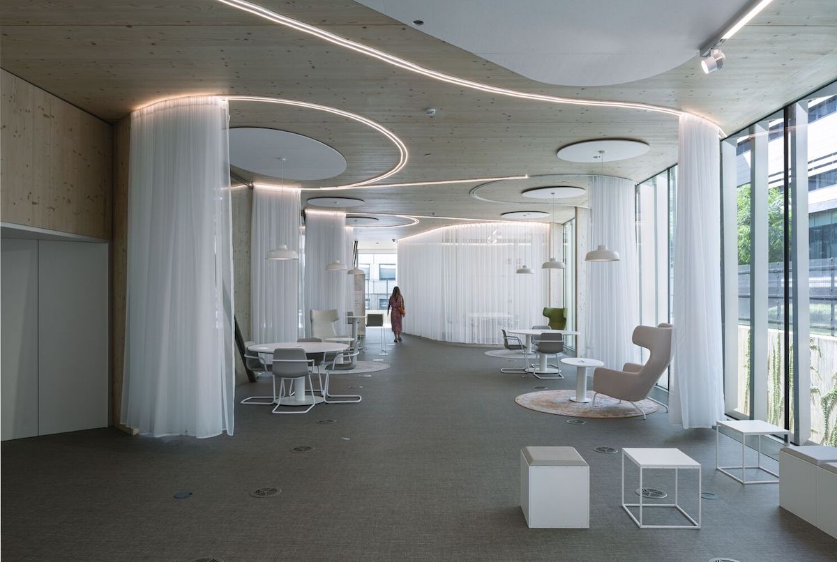 Будівлю організували навколо великого трикутного внутрішнього двору, який сполучає головні приміщення зі сходами та забезпечує природне освітлення. Проєктувальники потурбувалися, аби будівля пасивно охолоджувалася у спекотному та вологому кліматі столиці Каталонії.