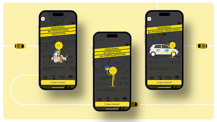 Відтак, у застосунку Uklon зʼявилась інтерактивна мапа України. Потрусивши її, виникає пін, який розкриває причини незалежності громадян країни. Наприклад, «Незалежні, бо прихистимо хвостатих», «Незалежні, бо рухаємо свою країну» або ж «Незалежні, бо нам личить русофобія. І тобі!».
