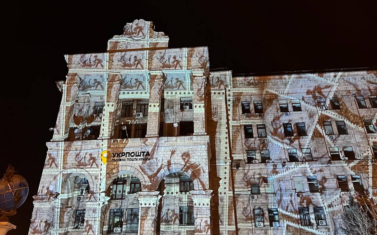 Фото: головпоштамт, підсвічений швейцарським митцем Геррі Хофштеттером
