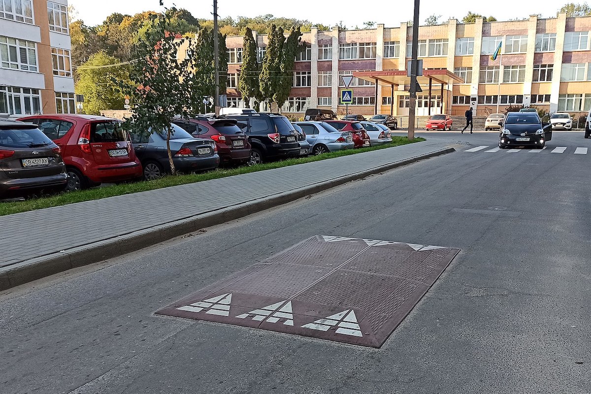 Це засіб зниження швидкості руху вже встановлюють у Львові, Дніпрі та Вінниці. На відміну від «лежачих поліцейських», «берлінська подушка» дозволяє важким габаритним автомобілям, таким як автобуси та спецтехніка, пропускати нерівність між колесами.