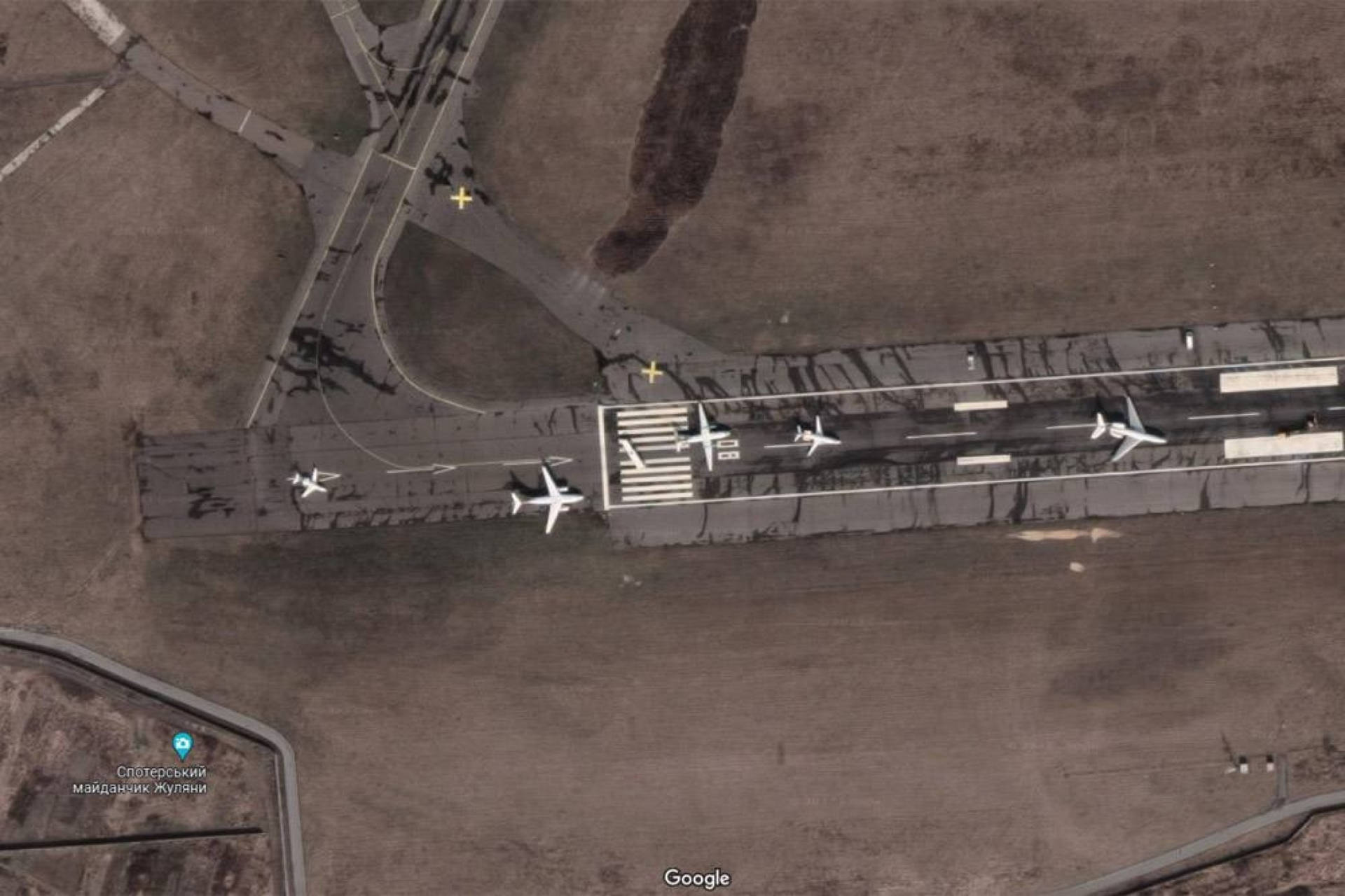 На початку повномасштабного вторгнення РФ в Україну злітну смугу аеропорту «Жуляни» заблокували для того, щоб не дати приземлитися російським військовим літакам із десантом на бортах. На супутникових знімках видно, що злітно-посадкова смуга по всьому периметру заблокована автобусами, заправниками, снігоприбиральною технікою та багажними візками. Крім того, одну з посадкових смуг блокують п’ять пасажирських літаків.
