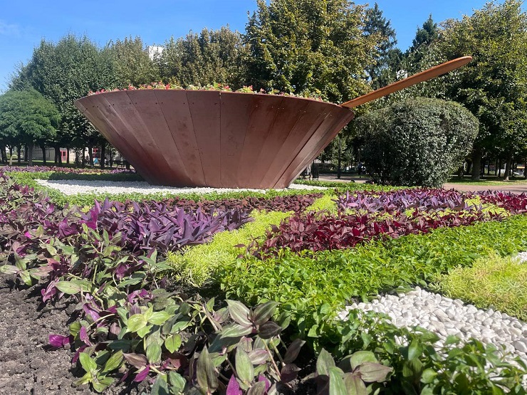 Комунальники Солом’янського району створили в сквері на Повітрофлотському проспекті квіткову композицію у вигляді «борщу на вишитому рушникові». Про це повідомляє підприємство по утриманню зелених насаджень.