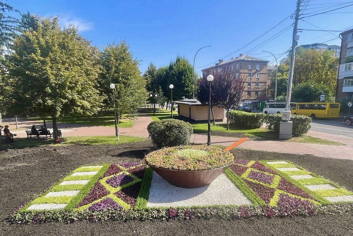 На Солом’янці комунальники створили клумбу «борщ на вишитому рушнику»