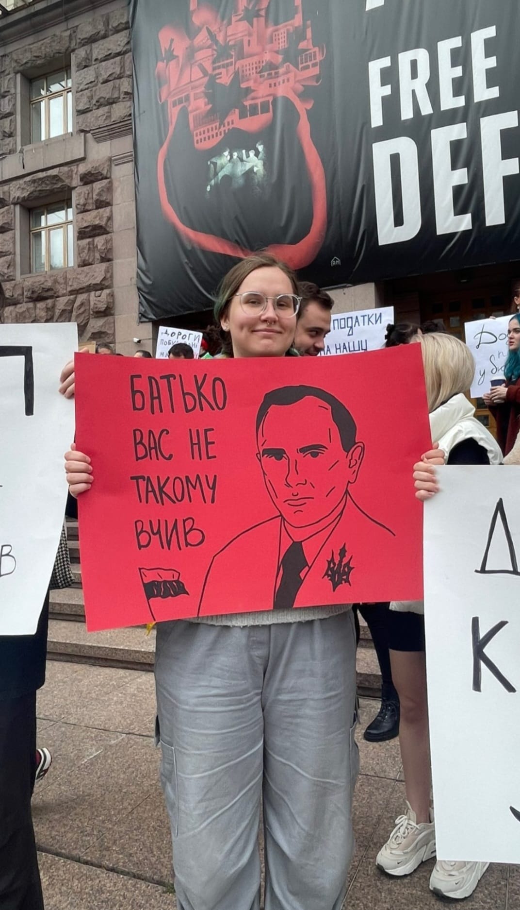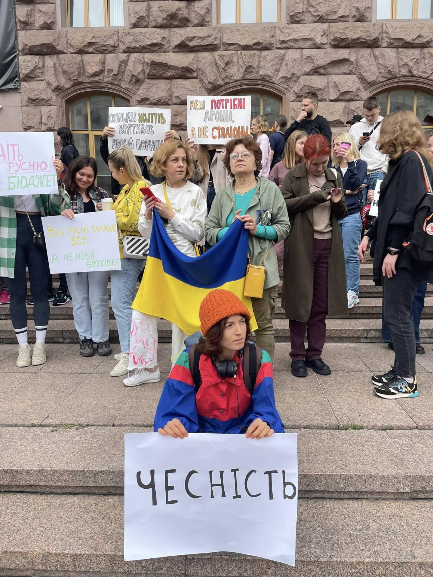 Містяни згадали будівництво транспортної розв’язки на Оболоні за 2 млрд гривень, перекладання бруківки на вулиці Богдана Хмельницького, ремонт стадіонів, купівлю барабанів для бомбосховищ. Вони закликають владу використовувати податки киян Збройні сили України.