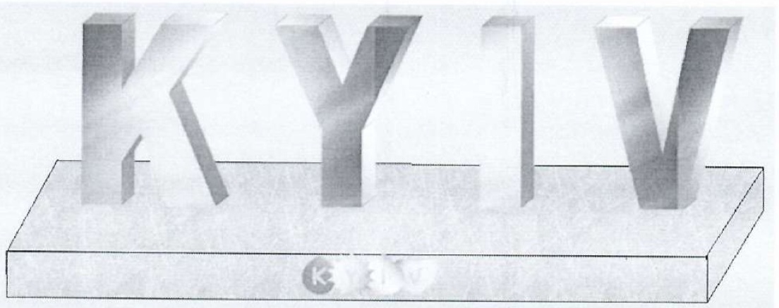 Перша конструкція — двометрові дзеркальні літери KYIV з харчової сталі. Шрифт — Arial Bold. На гранітній основі має бути розміщено ще один напис KYIV у вигляді офіційного туристичного логотипу. Гострих кутів, зображених на ескізі, бути не повинно.