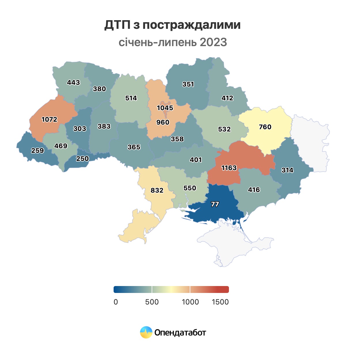 При цьому 16% від усіх ДТП з постраждалими стається у Києві та області.