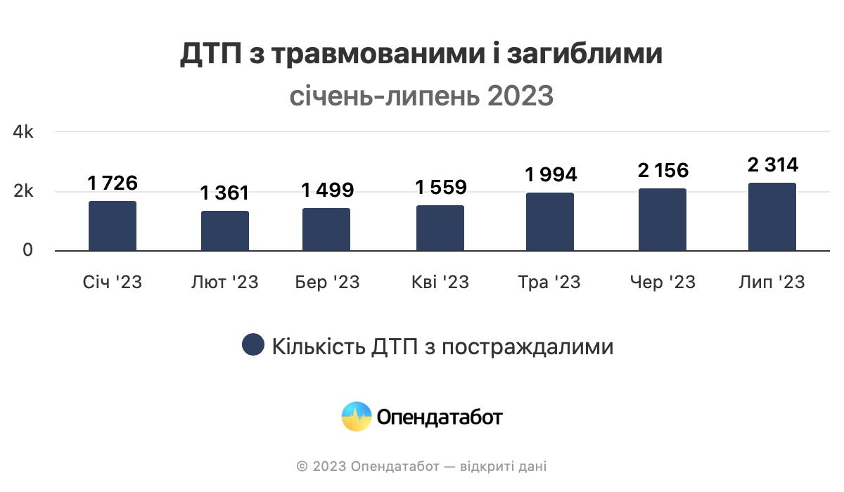 Загалом протягом січня-липня цього року в Україні трапилося 12,6 тисячі аварій з травмованими і загиблими.