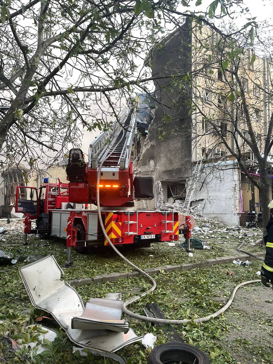 У Черкасах уламки впали у центральній частині, постраждав готель, загорілися павільйони на ринку, поранено 10 осіб, рятувальники розбирають завали.