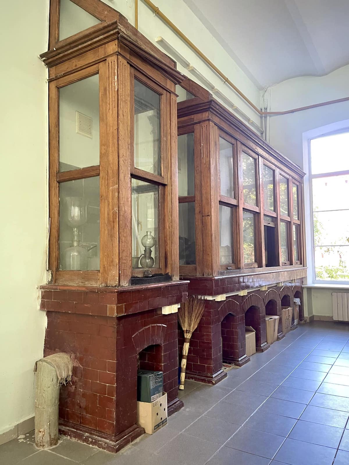 У лабораторних приміщення досі стоїть старовинне обладнання: шафи для речовин, печі для дослідів, умивальники.