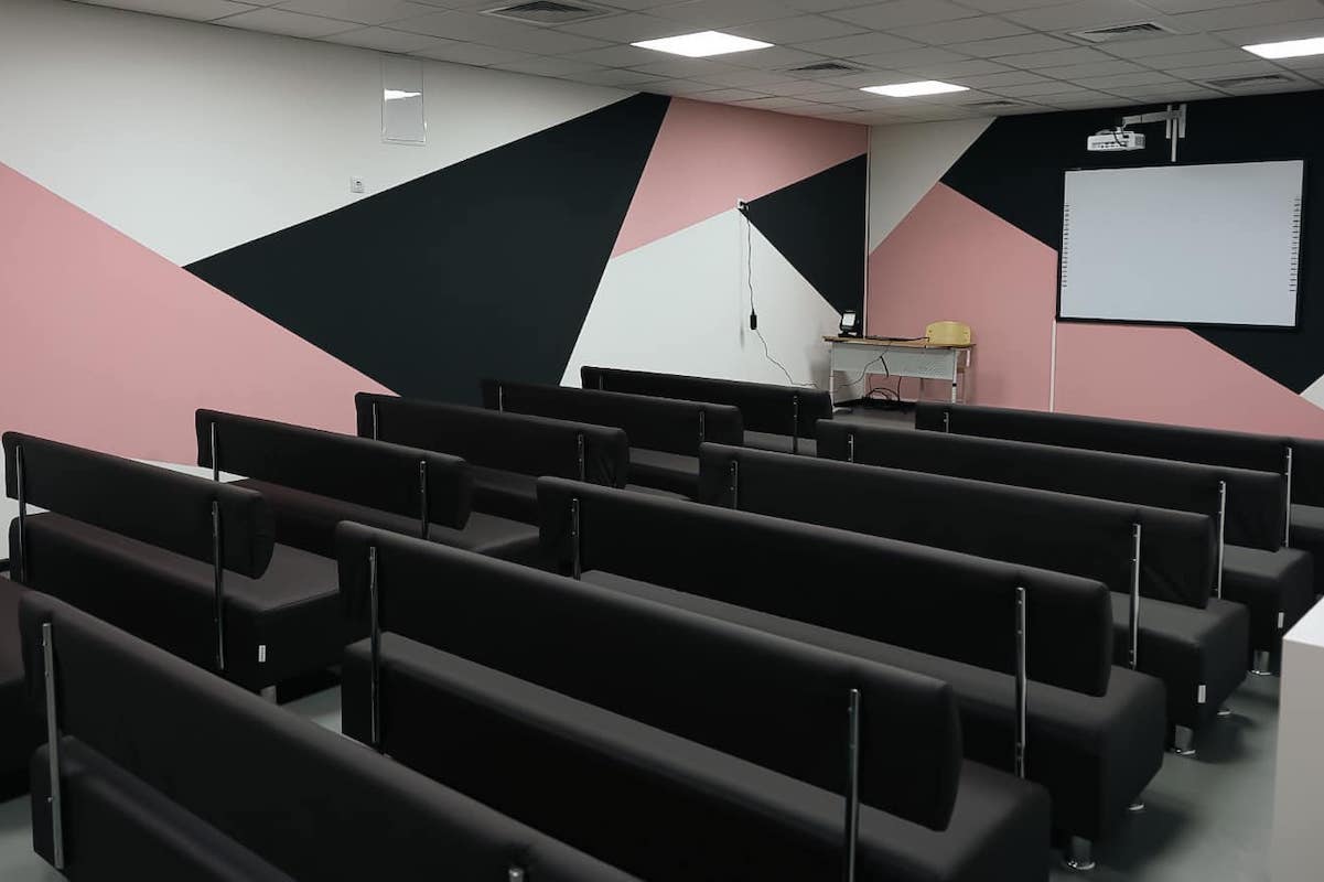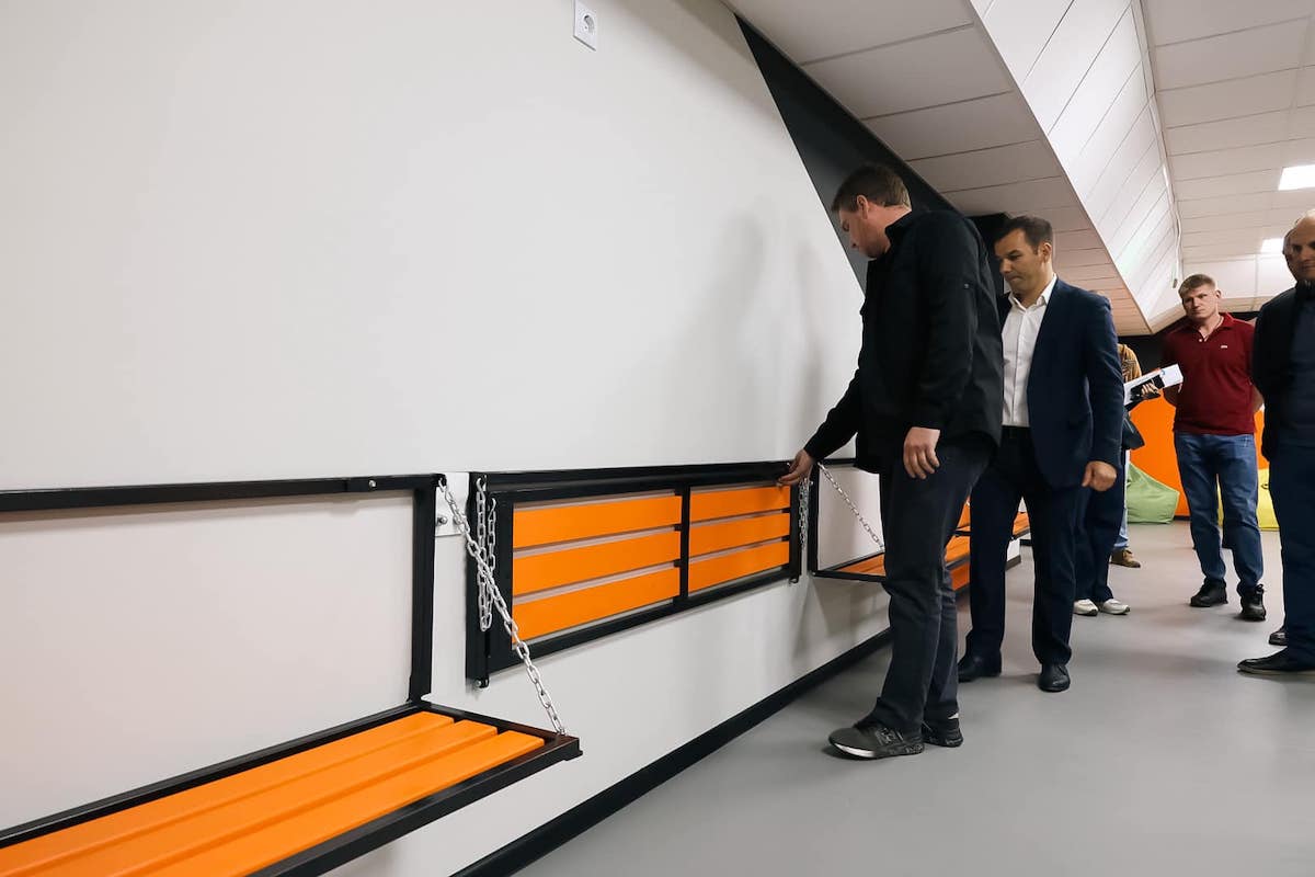 Тут чотири зали з меблями, три кімнати для співробітників і великий коридор із місцями для сидіння. Є запаси питної води, продуктів, медичні аптечки, ковдри, спальні мішки, розкладачки і каремати.