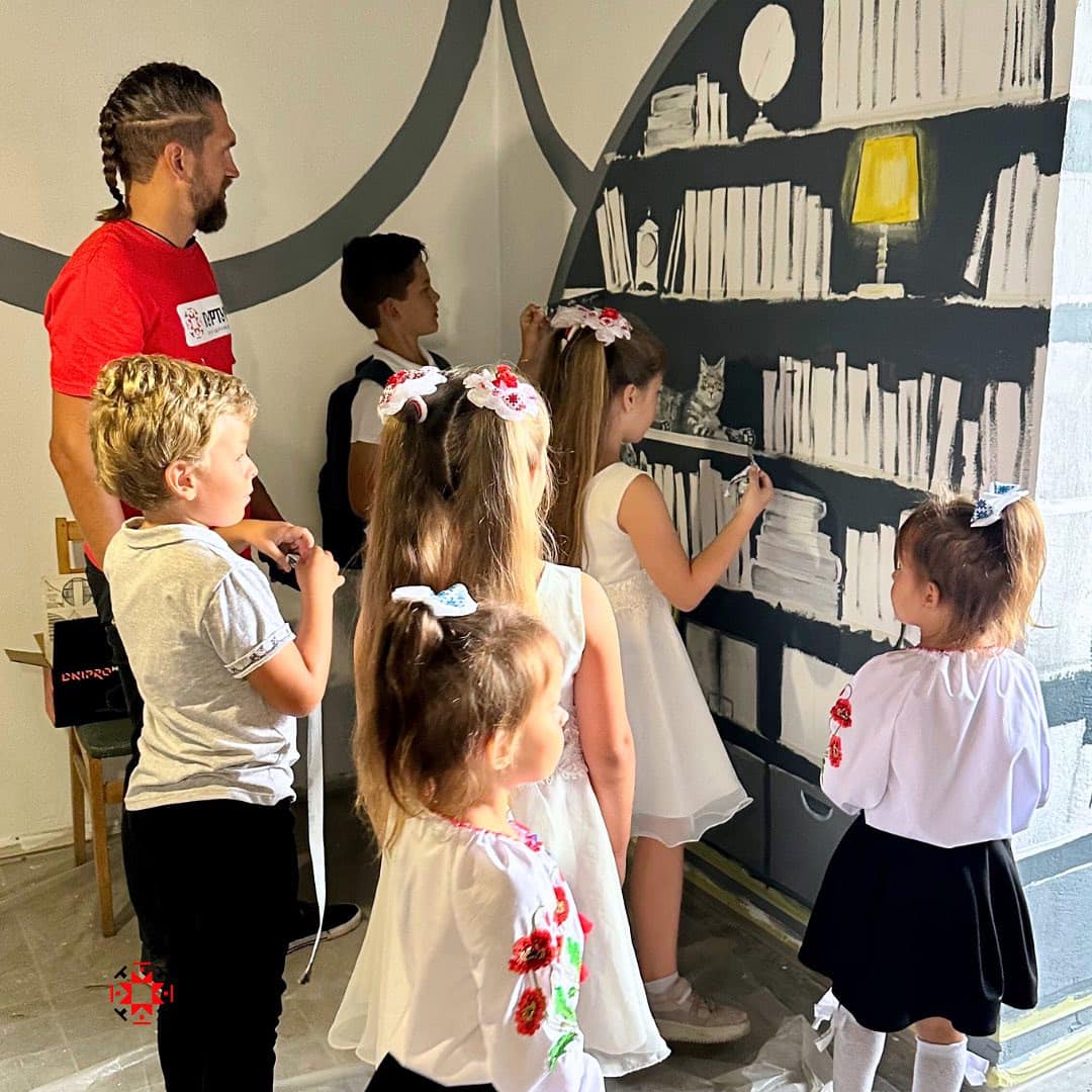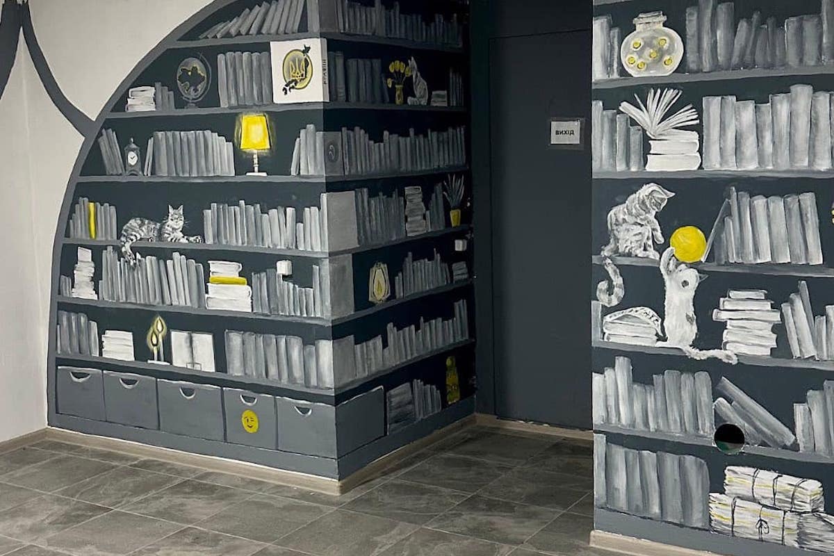 За будівельними нормами, зауважують у фонді, в укритті заборонено встановлювати декоративні конструкції. Тому від ідеї казкового комину та балок на стелі довелося відмовитися. Натомість стіни прикрасили розписами.