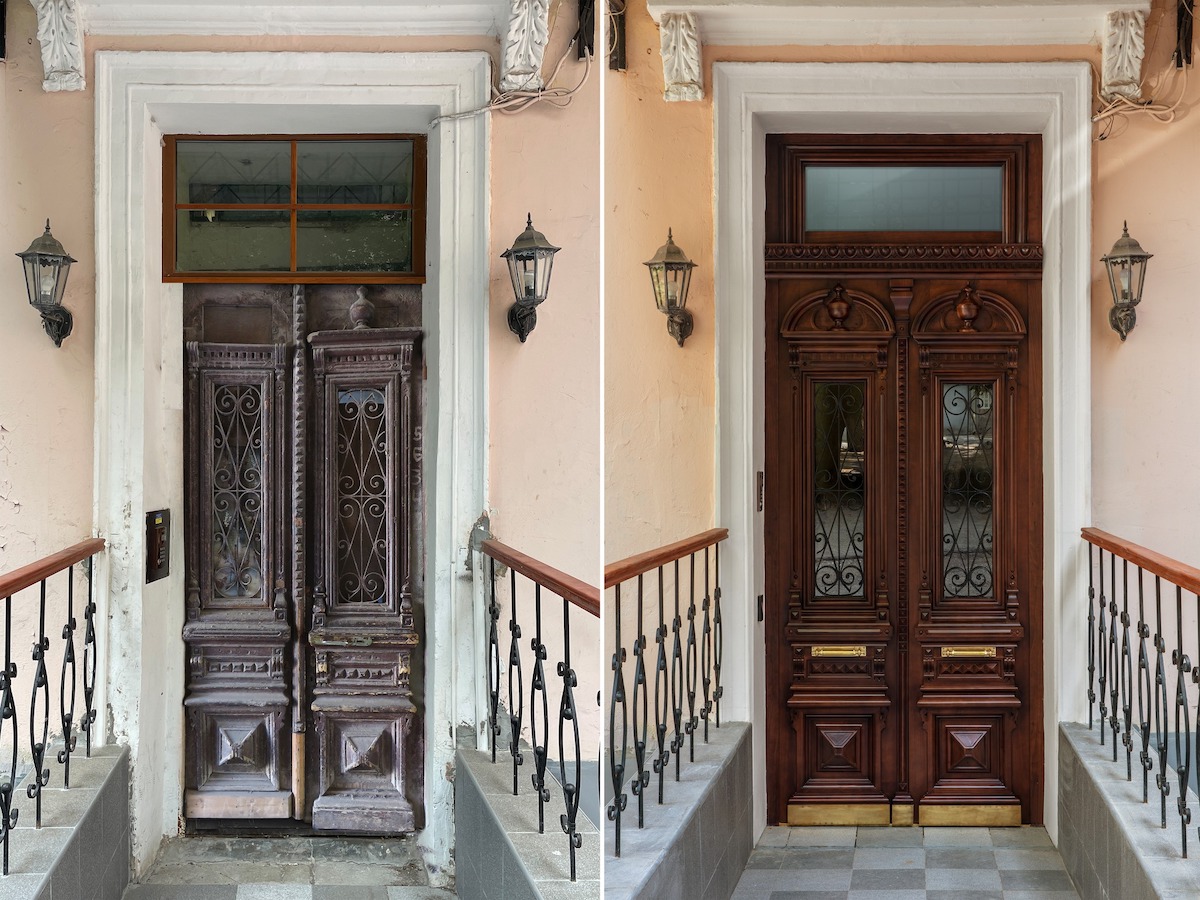 Одеські реставратори відновили вхідні двері будинку Григорія Маразлі, збудованого у 1835 році в стилі класицизм, повідомляє майстерня «Тисячі дверей».