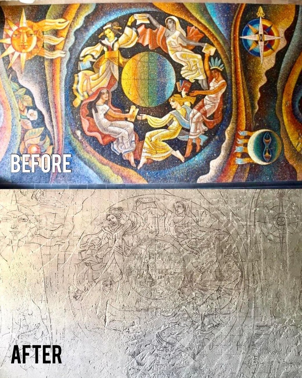 Нагадаємо, нещодавно у Львові знищили мозаїку авторства Богдана Сойки у приміщенні видавництва «Вільна Україна». Андрій Москаленко заявив, що мозаїка була внесена до переліку мозаїк, які підлягають захисту та мала охоронний статус. Він додав, що мозаїка повинна бути відновлена, а винні – покарані.
