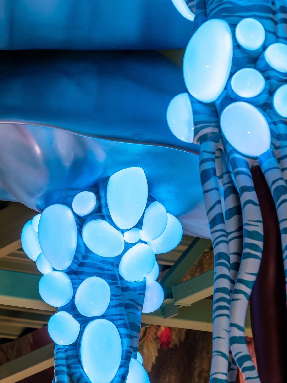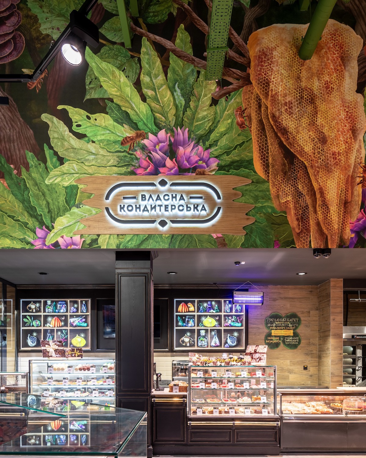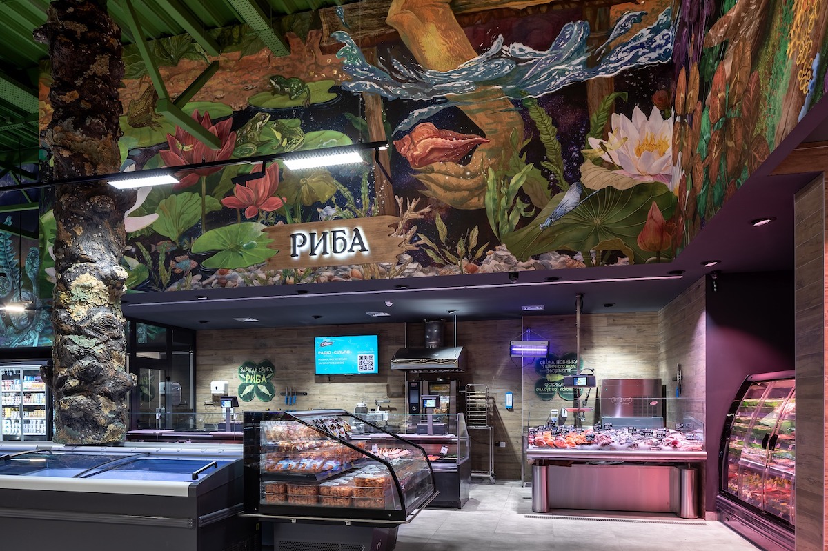 Розписи на стінах «Сільпо» зображають лісових і болотних мешканців і флору. Колони декорували у вигляді порослих мохом стовбурів дерев.
