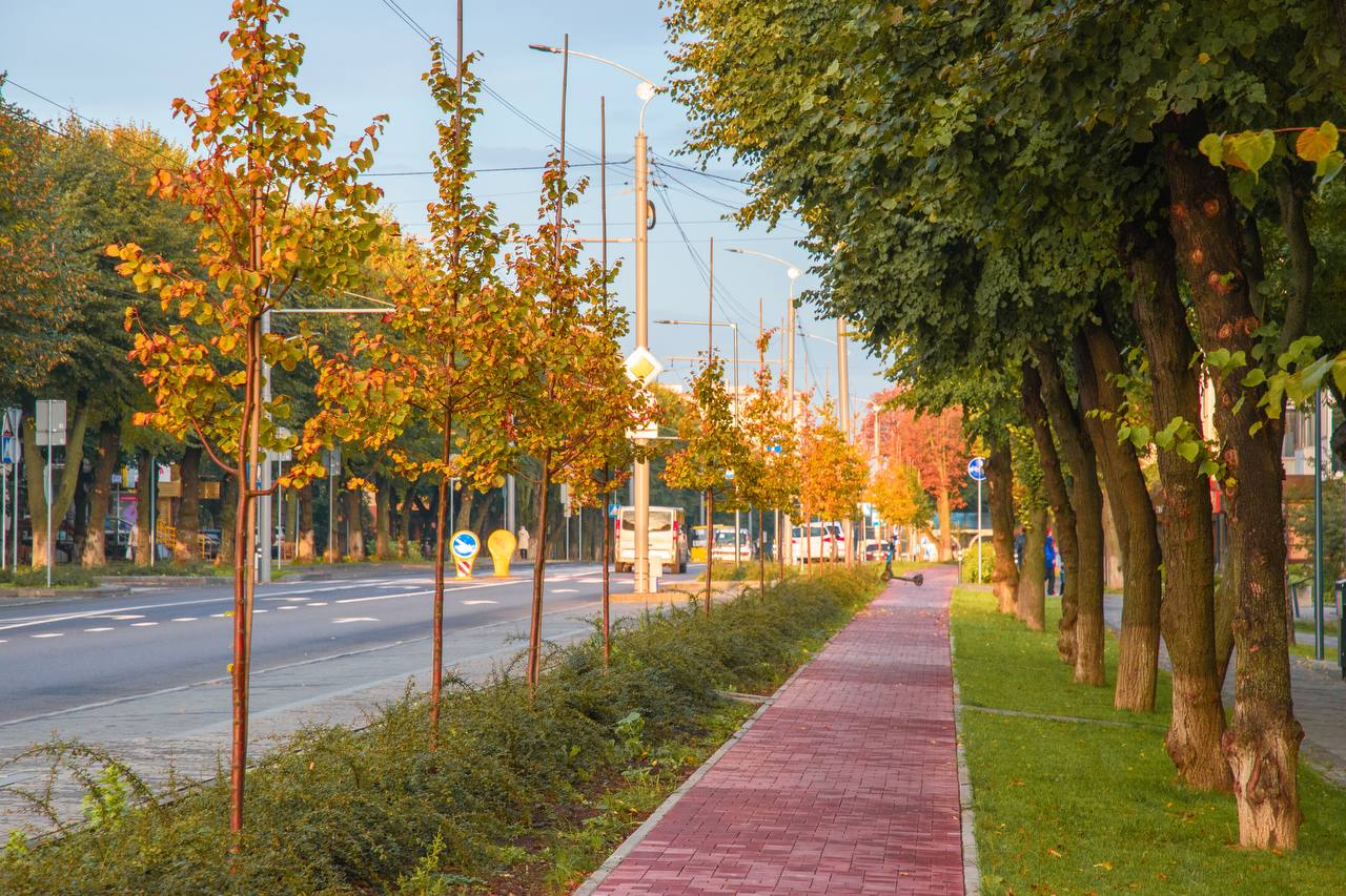 Проспект значно озеленили: було висаджено велику кількість дерев, кущів та засіяно новий газон. Також окремо попрацювали над освітленням – встановлено LED-ліхтарі, які освітлюють пішохідну зону та пішохідні переходи, також додали підсвітку дорожніх знаків.