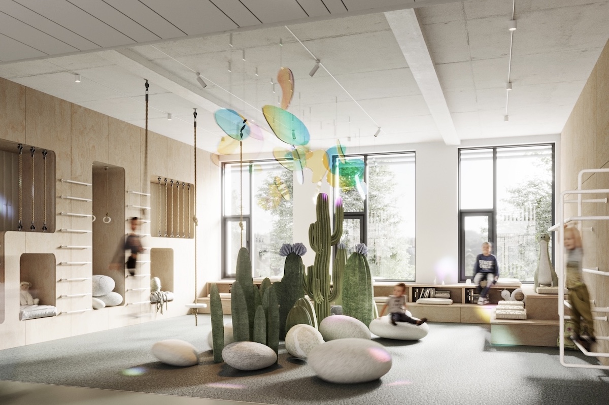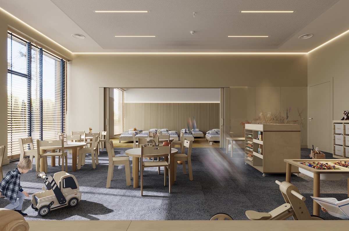 «Головний виклик проєкту — створити простір, гендерно-нейтральний та такий, який не заважатиме дітям йти власним шляхом до розвитку», — зазначають проєктувальники.