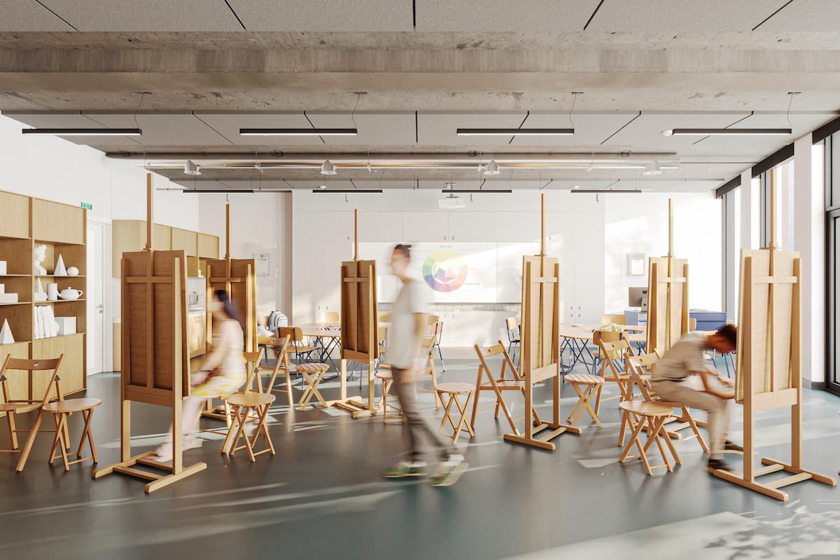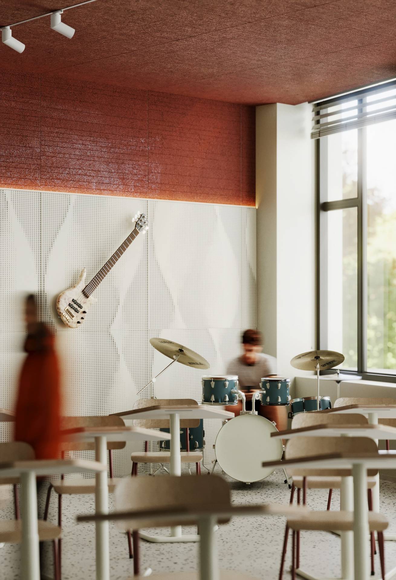 Тож інтер’єри не перенасичені кольорами й деталями, щоб не відвертати уваги від навчання.