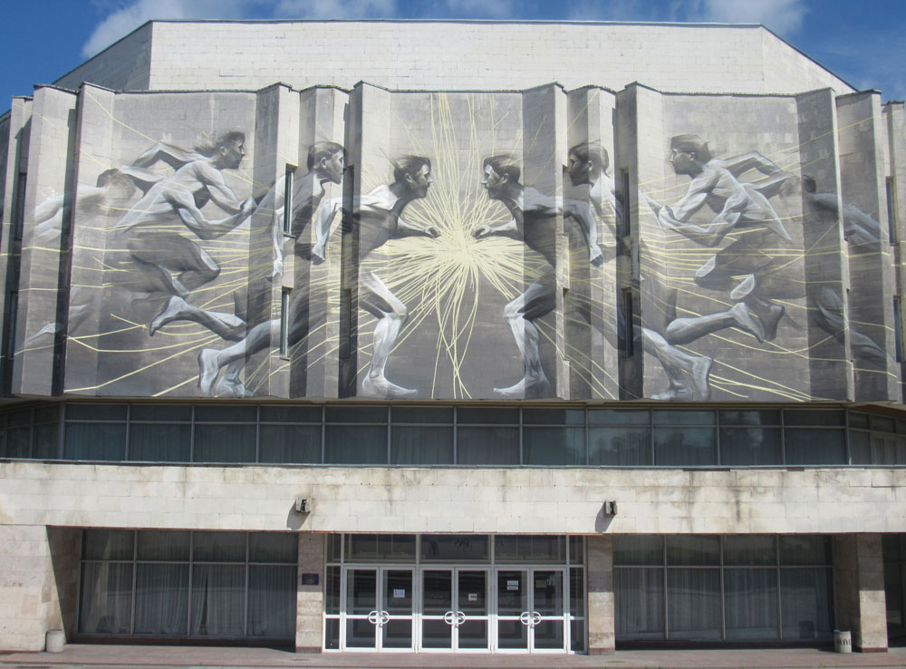 На модерністських фасадах окремих будівель КПІ вже є мурали. У 2016 році на стіні Центру культури і мистецтв з’явився стінопис канадського художника Аарона Лі Хілла.
