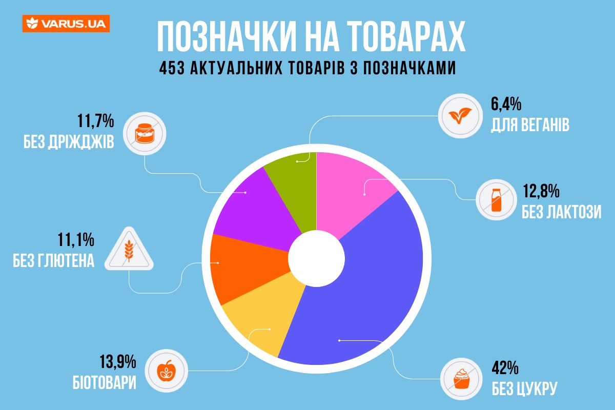 На varus.ua не просто продають продукти — онлайн-сервіс доставки дбає про твій час та зручність покупок. Сьогодні в асортименті представлено 453 товари з різними спеціальними позначками. Це не просто маркетинговий трюк — це турбота про тебе та твій час.
