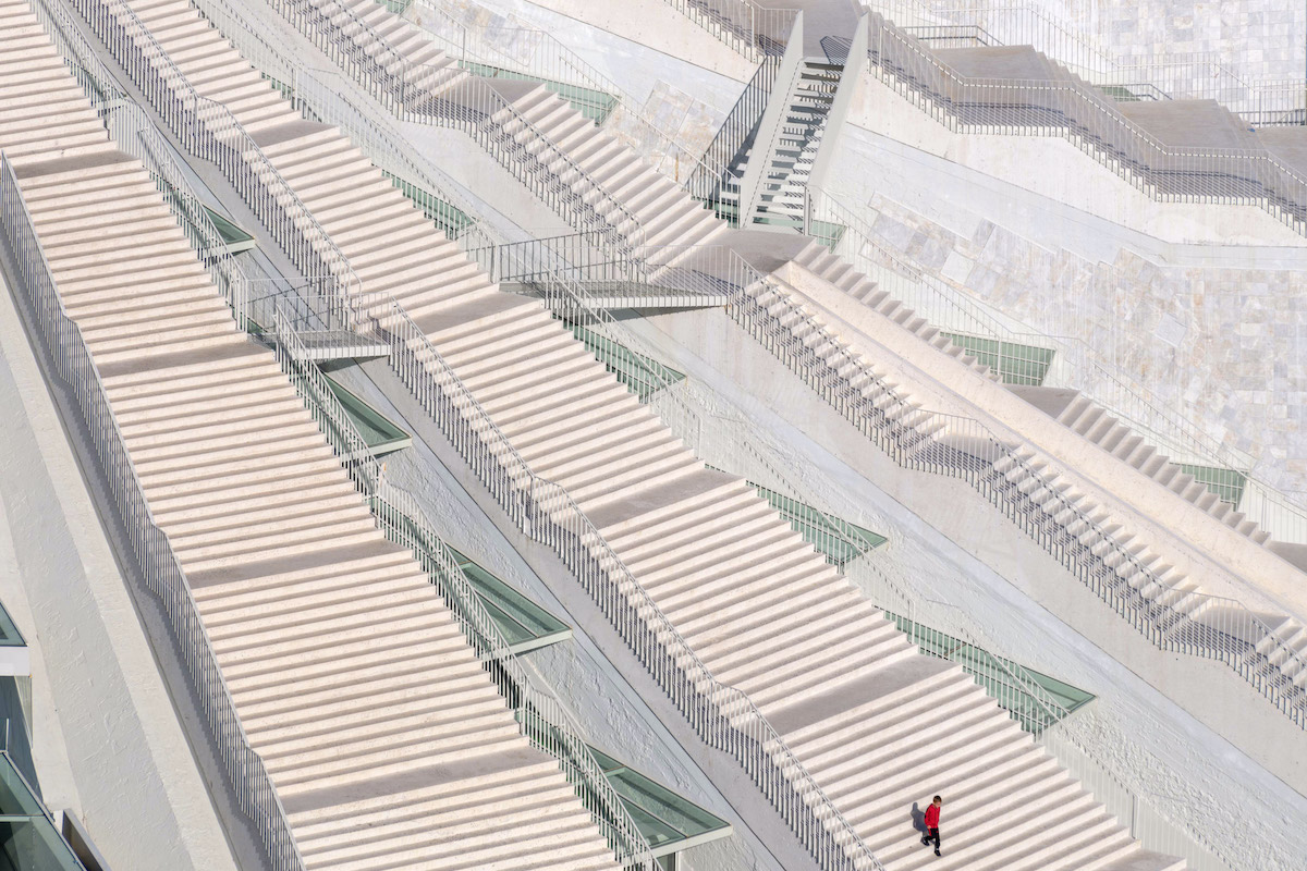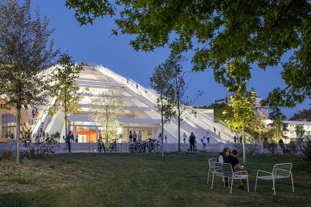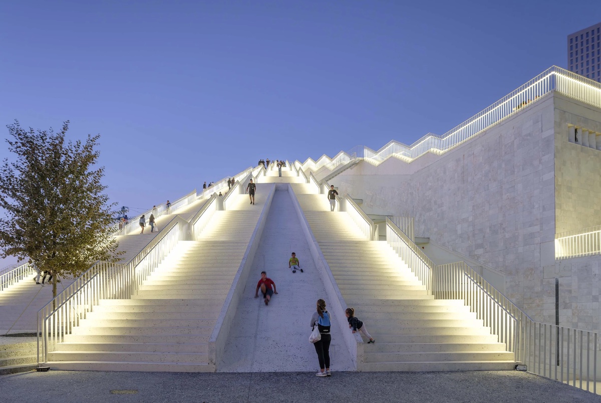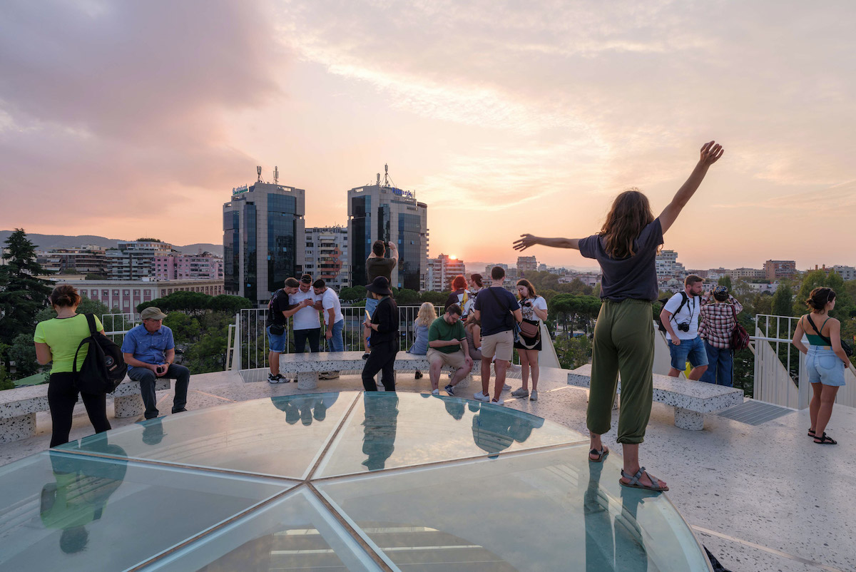Раніше похилі бетонні стіни не мали сходів, але албанські підлітки все одно видиралися на дах. Архітектори переосмислили це стихійне використання будівлі. У цієї функції є й символічний вимір — жителі можуть підійматися на споруду, яка колись слугувала монументальним музеєм лідера Енвера Ходжи.