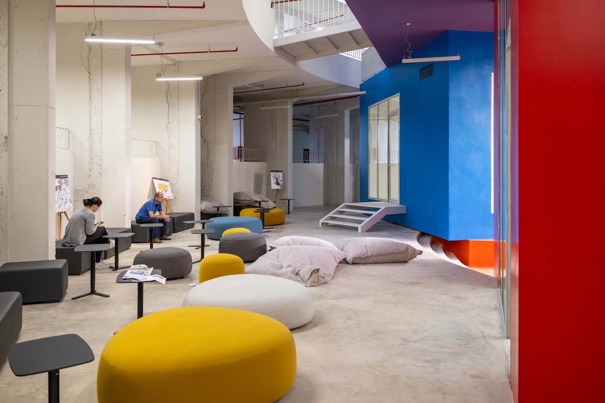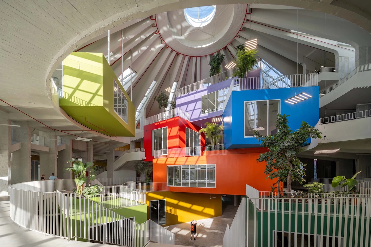 Вони нагромаджені по центру під склепінням, ніби башта з кубиків, формуючи кімнати різного призначення. Там розміщуватимуться навчальні класи, майстерні, офіси та кав’ярні.
