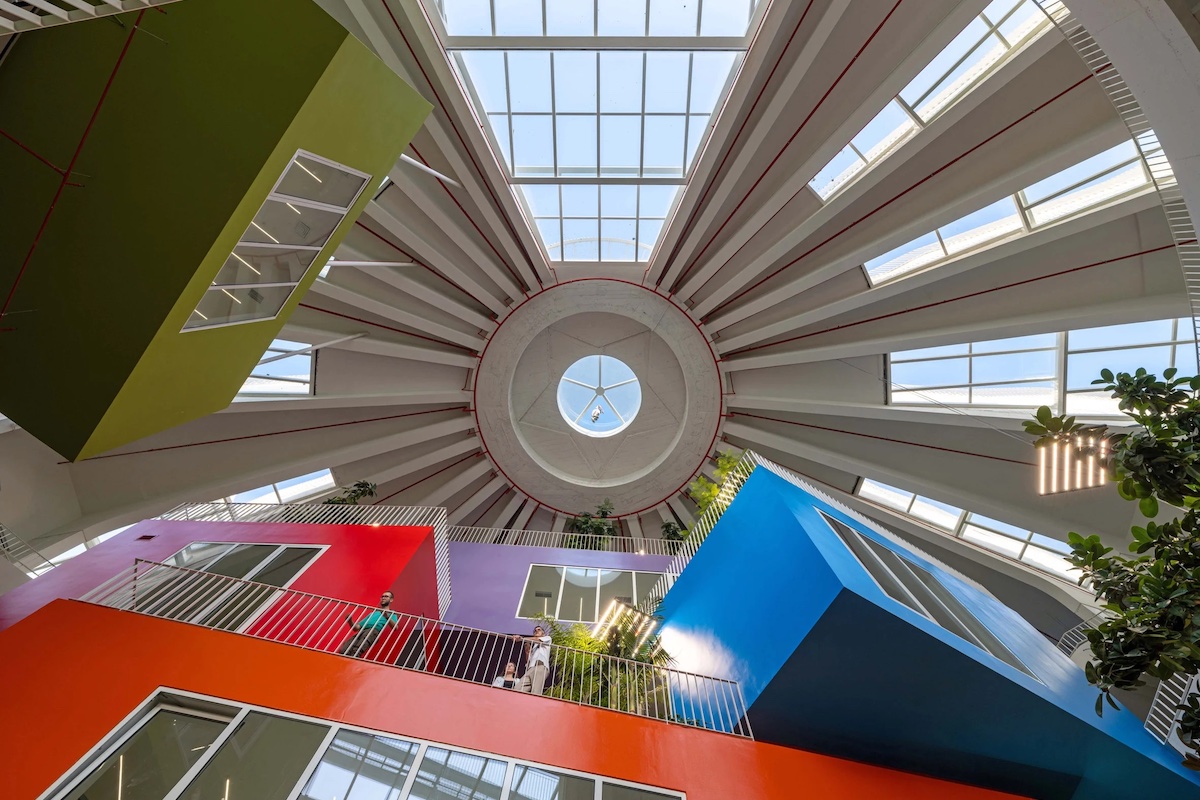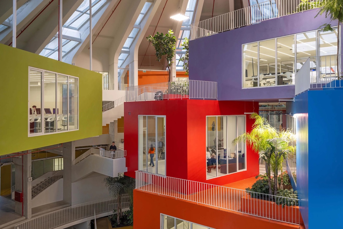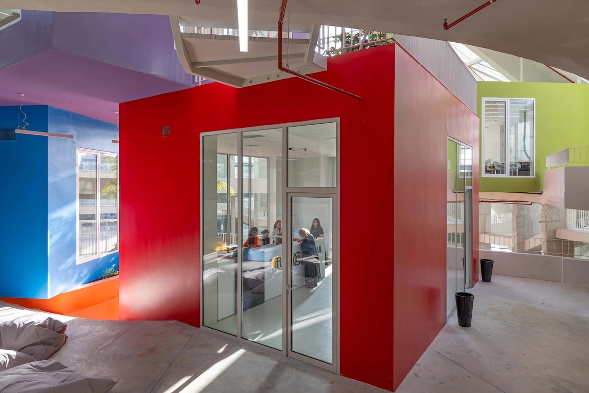 Архітектори розмістили кольорові бокси — чотири нагорі будівлі, декілька на прилеглій території, а також і всередині приміщення.