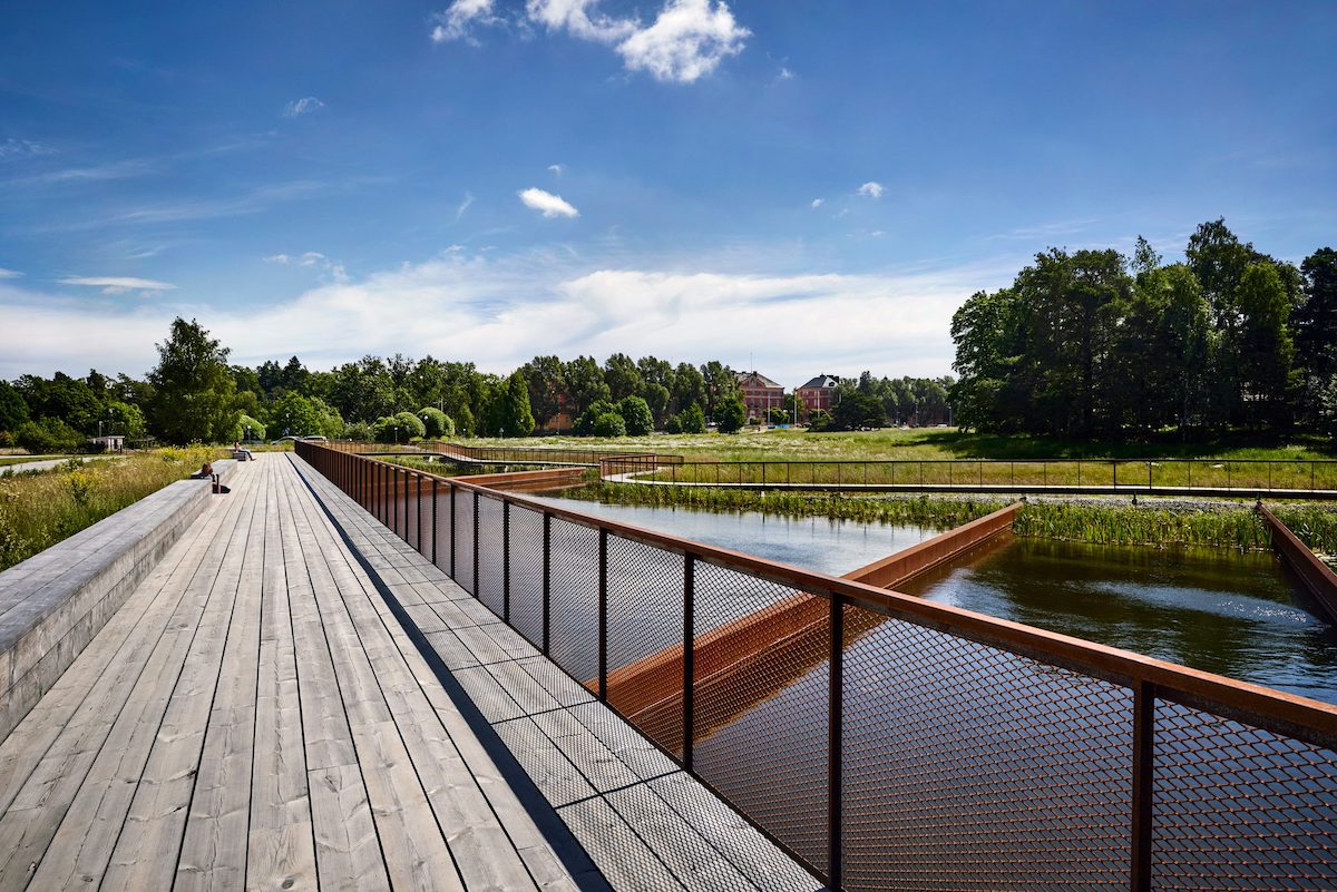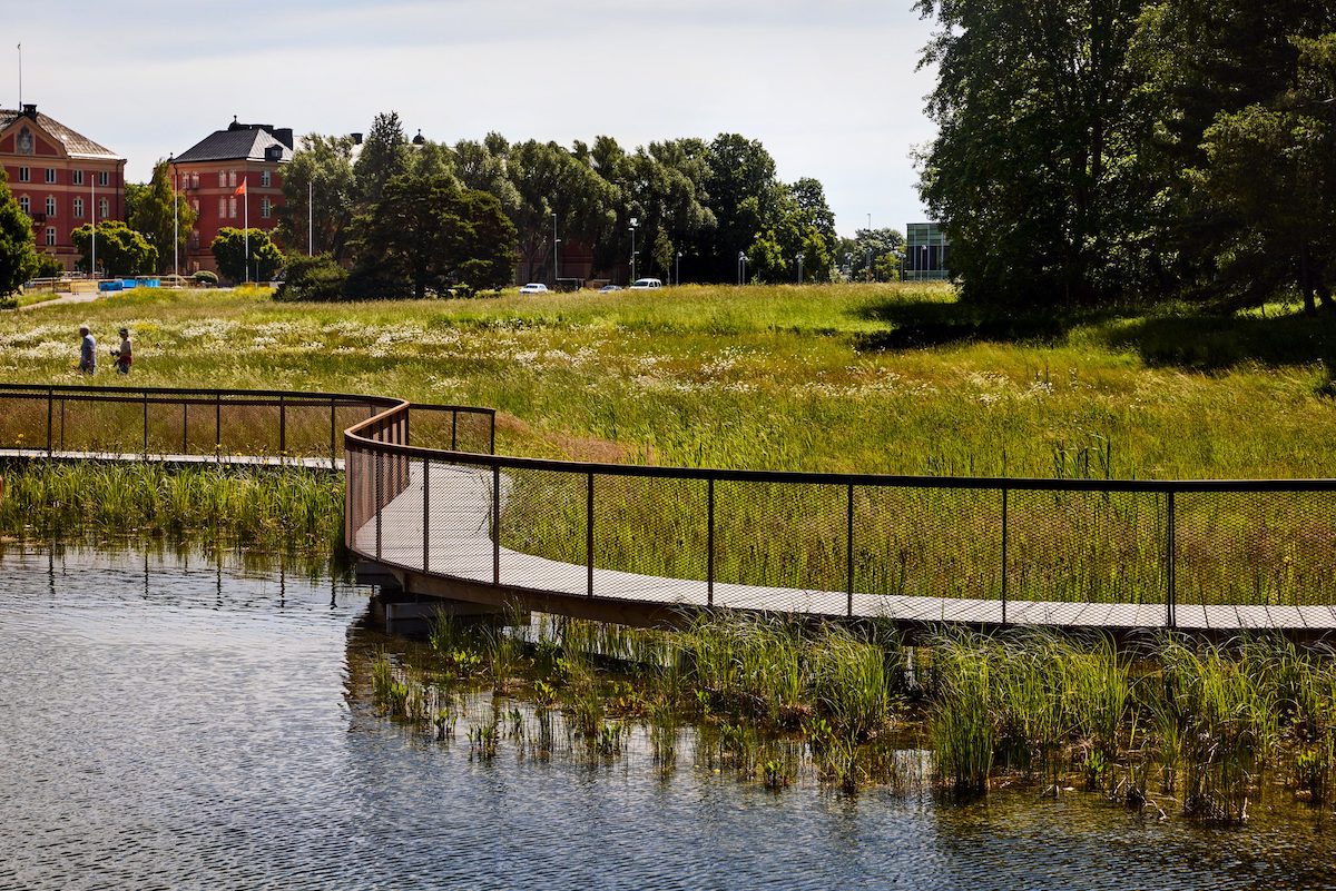У шведському місті Уппсала облаштували ставок для зливових вод, який одночасно став і місцем для прогулянок, повідомляє Dezeen.