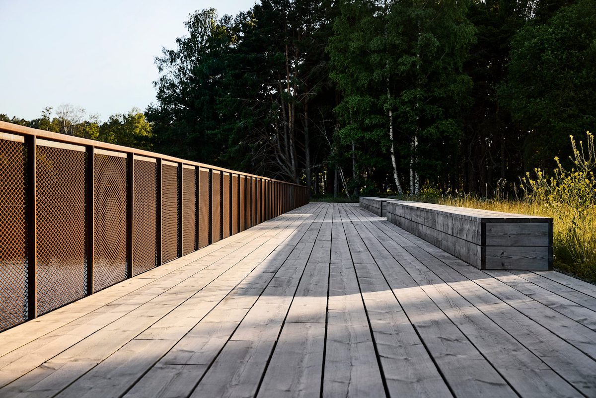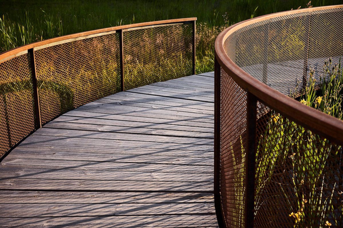 Необроблене дерево та кортенову сталь використали, щоб мінімізувати потрапляння зайвих речовин у воду.
