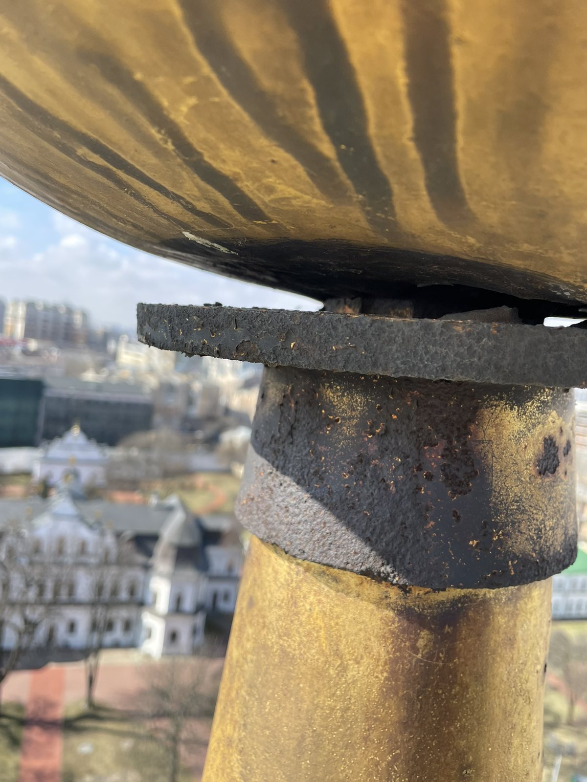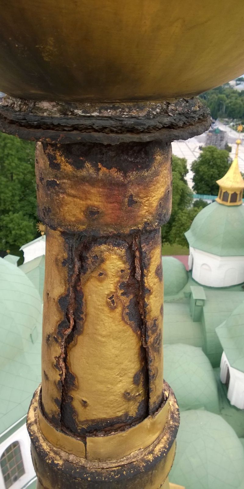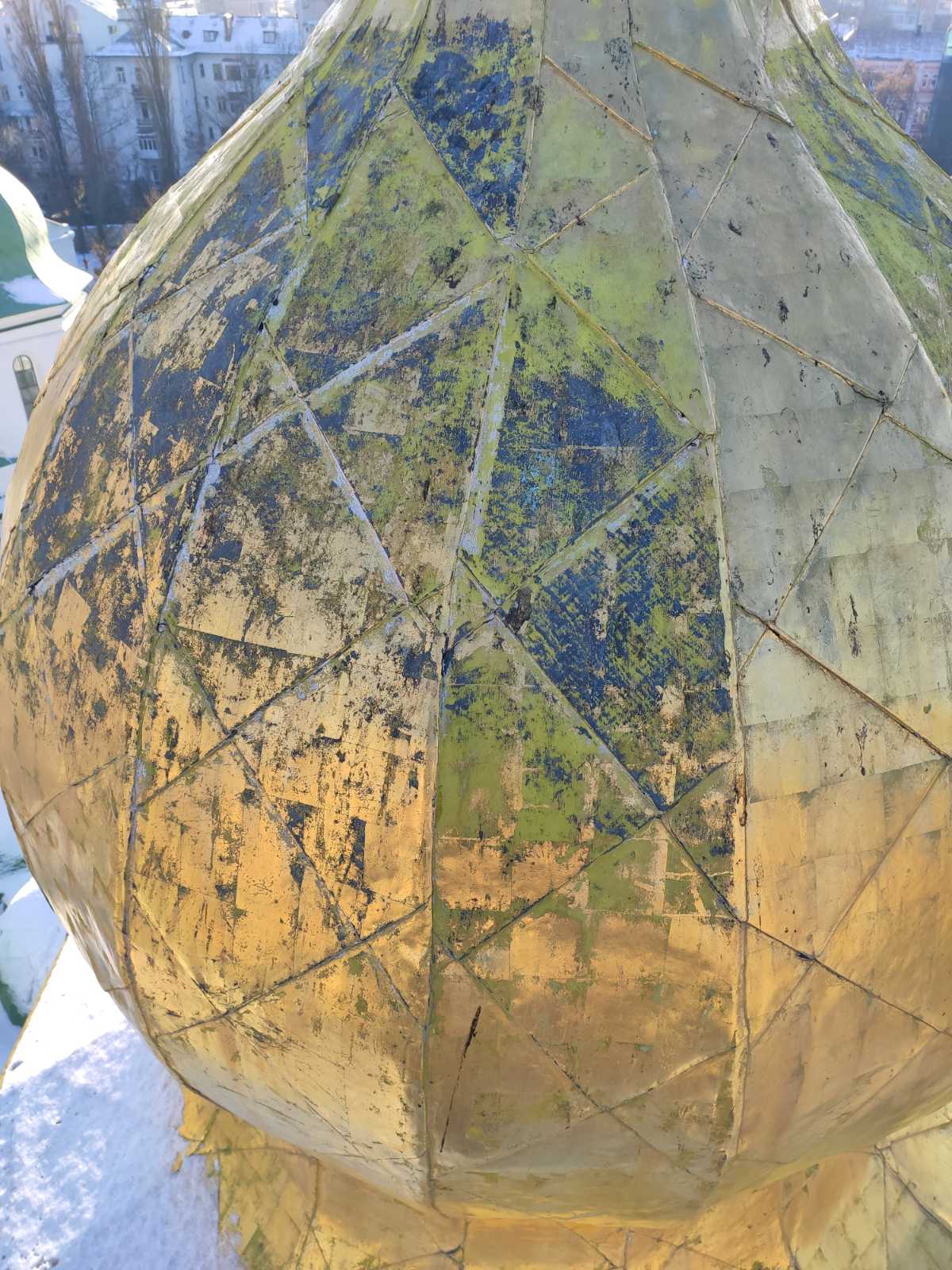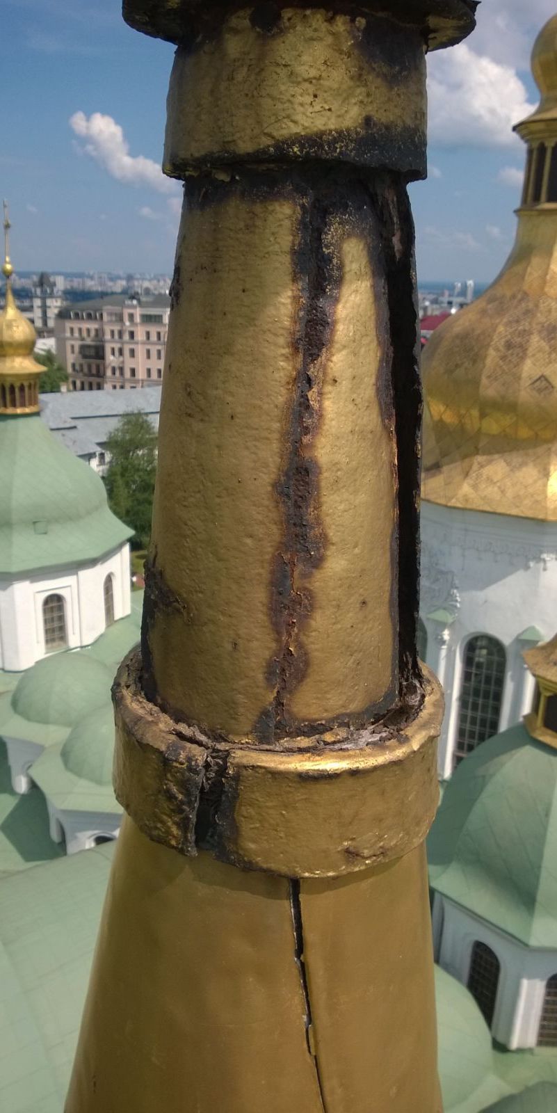 У найгіршому стані — центральний купол Софії. Адміністрація заповідника додає фото, які мають продемонструвати аварійний стан куполів і даху, «що може в будь-який час призвести до руйнації як частини куполів так і маківок, і хрестів».
