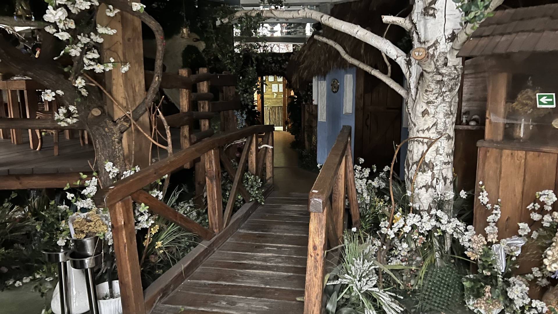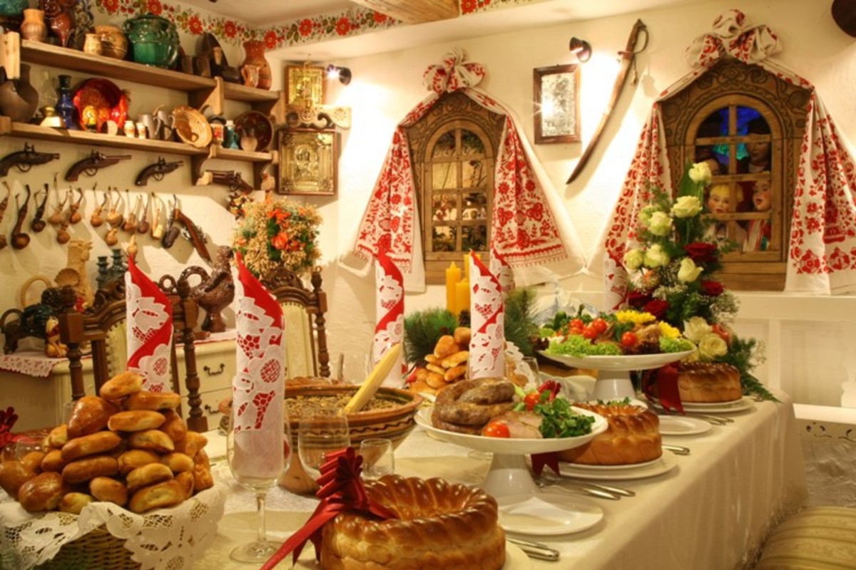 Ресторан має більше десяти зал, стилізованих в атмосфері українського села – одна з них оформлена петриківським розписом.