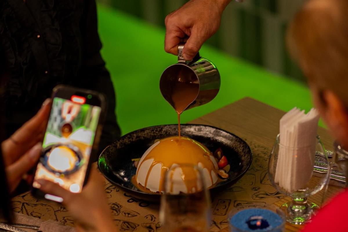 На десерт пропонують ягідний мус з шоколадом, авторську панакоту з манговим желе та ягодами або шоколадний фондан (225 гривень).