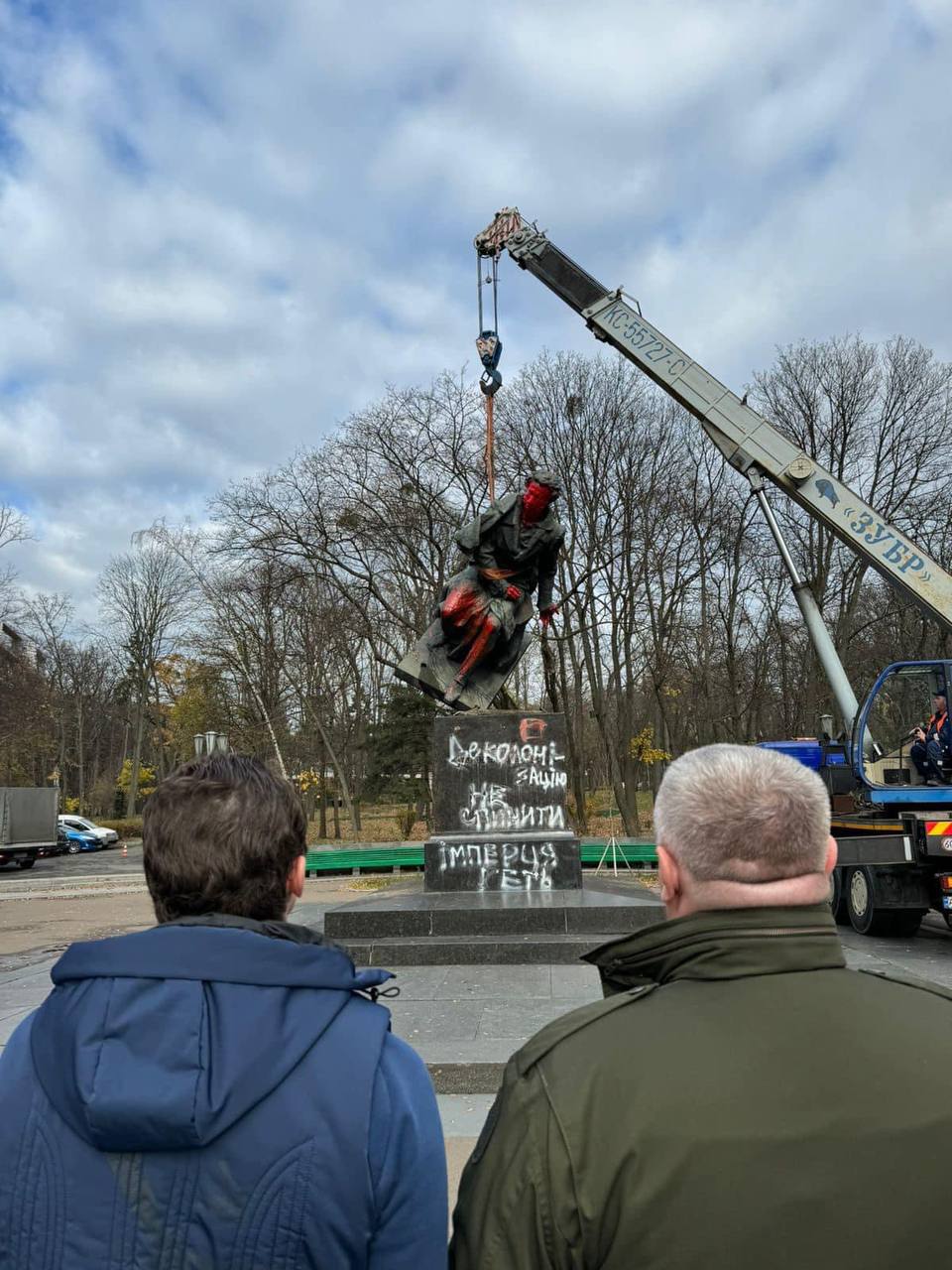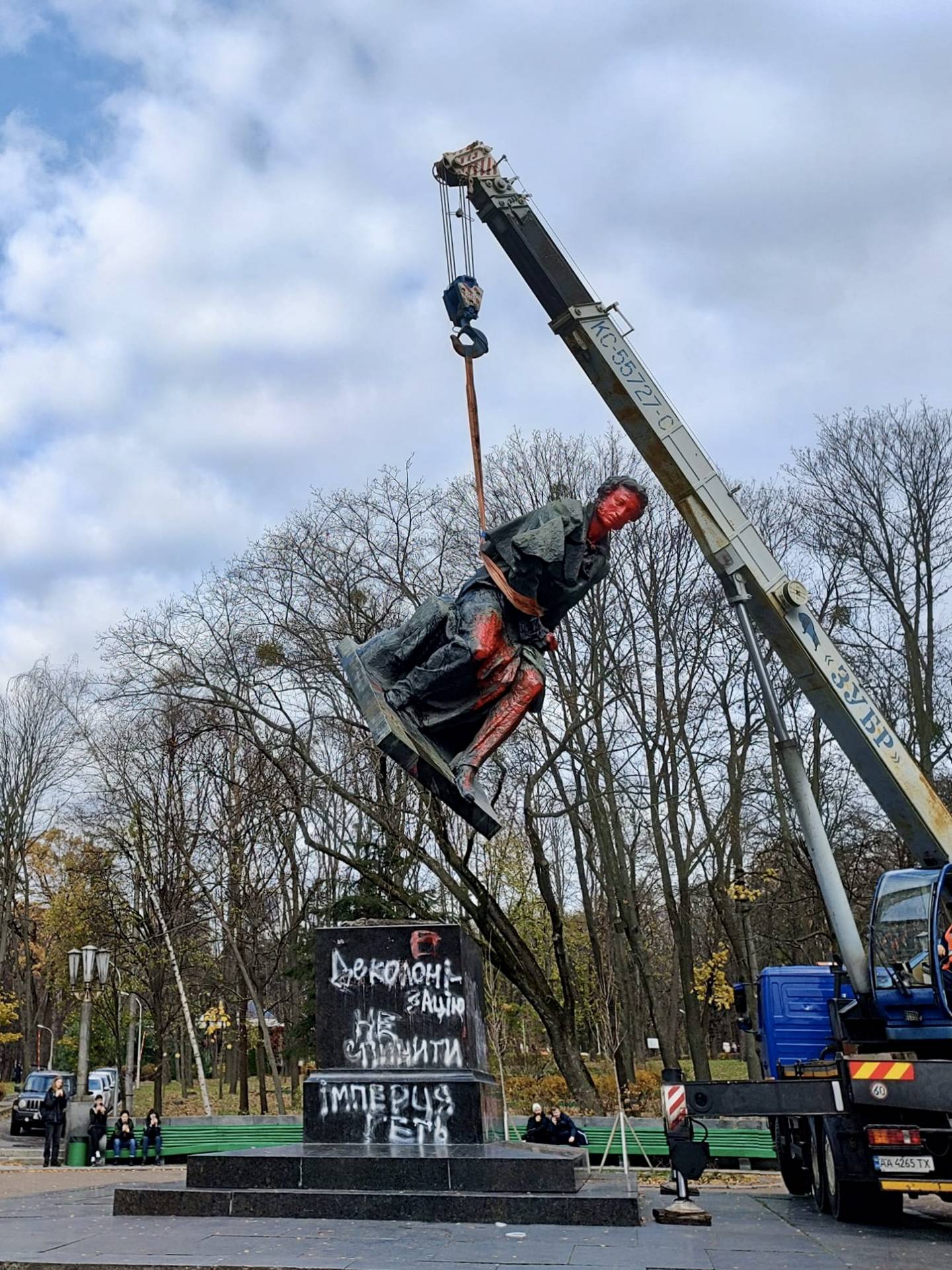 Памʼятник Олександру Пушкіну в парку ім. Івана Багряного на Берестейському проспекті нарешті демонтували, повідомив радник міського голови Дмитро Білоцерковець.