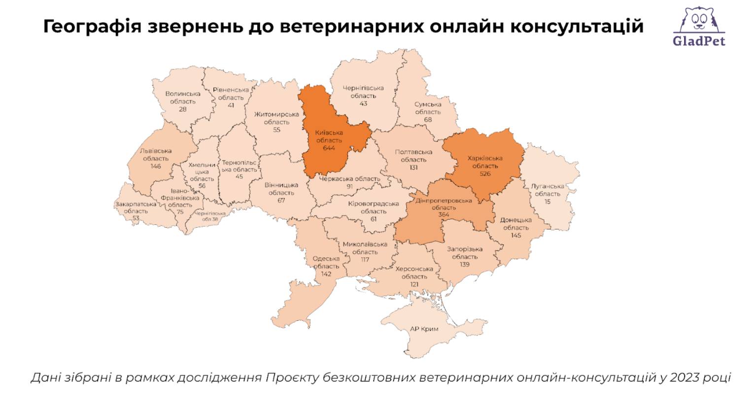 На початку організація постачала корми та медикаменти у різні куточки України, розповідає видання «Люк», проте потім виявилось, що цього недостатньо. Власники тварин у постраждалих регіонах та ті, хто вимушені були залишити свої домівки, часто не мали доступу до ветеринара. Тому GladPet разом з лікарями харківської ветклініки «Пес і Кіт» та міжнародною організацією «Ветеринари без кордонів» (VWB) організували безкоштовні онлайн-консультації.