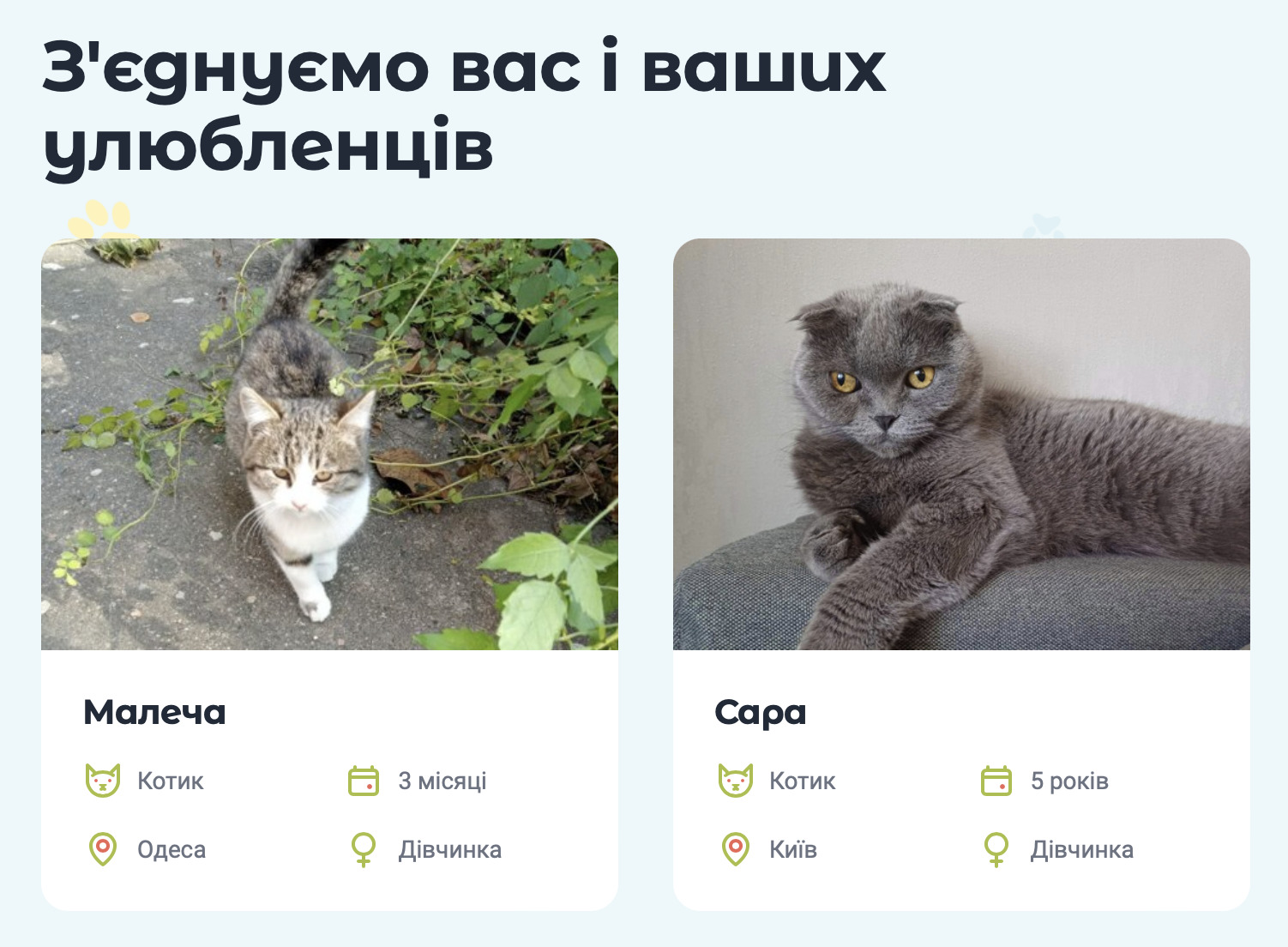 Окрім безкоштовних консультацій, GladPet також допомагає знайти дім безпритульним тваринам. На сайті проєкту можна обрати собі улюбленця та подарувати йому новий дім.