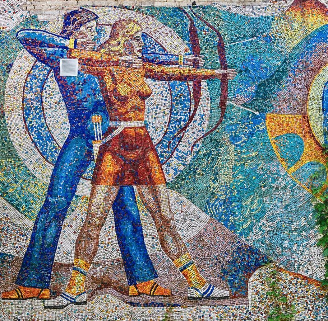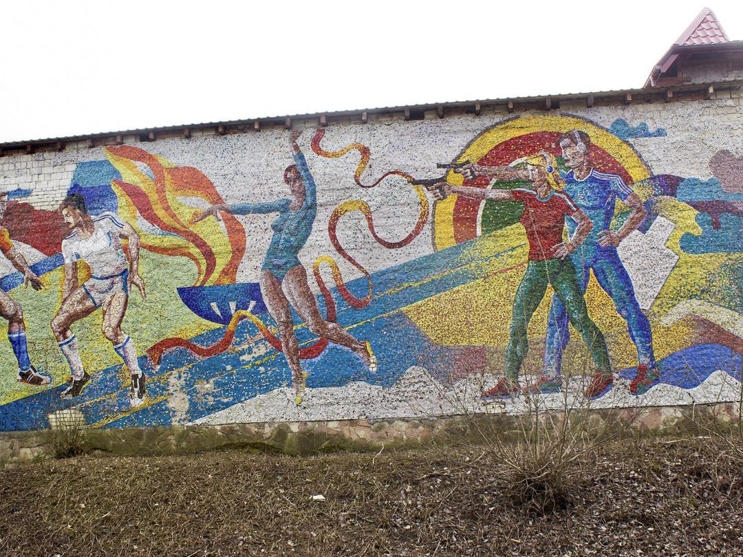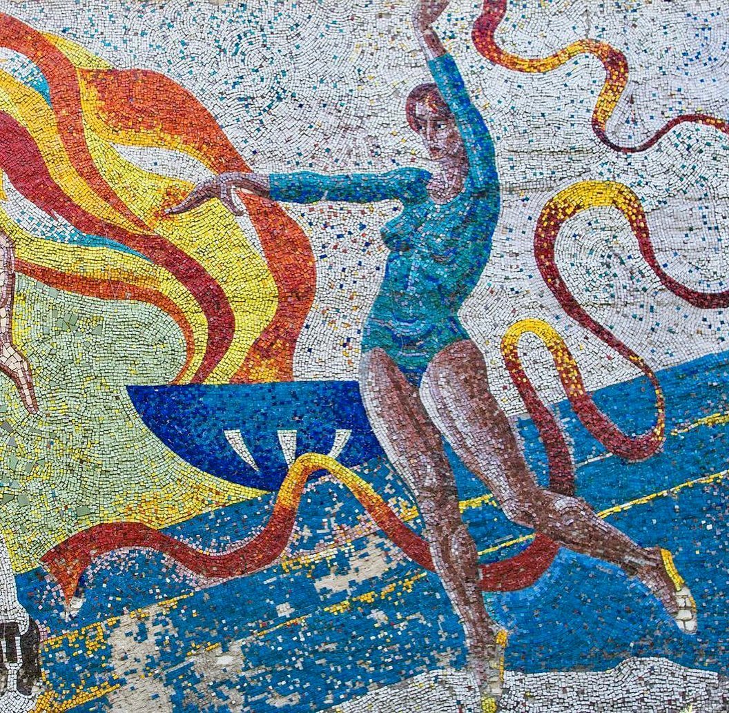 Мозаїчна композиція, довжиною понад 20 метрів прикрашала стадіон «СКА» у Львові. Її у 1984-1986 роках створила група художників на чолі з Ігорем Сиротинським.