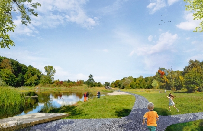 Після початку повномасштабної війни у Львові створили центр «Незламні матусі» – тимчасове житло для вагітних жінок. Раніше територія навколо була пустою, зарослою та без жодної інфраструктури. Тепер в одній з долин, куди мешканці раніше викидали сміття, облаштували місця для відпочинку, дитячий майданчик та доріжки, а також розчистили озеро поруч.