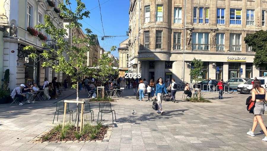 У 2020 році плитку на площі частково замінили на граніт, проте залишилась ділянка з незручним рельєфним каменем, яка не несе історичної цінності. Марина Пелещак розповідає, що одна компанія-забудовник прокладала комунікації під цією територією і її попросили після закінчення робіт замінити плитку на більш зручну. А за кошти сусідньої кавʼярні встановили вуличні меблі.