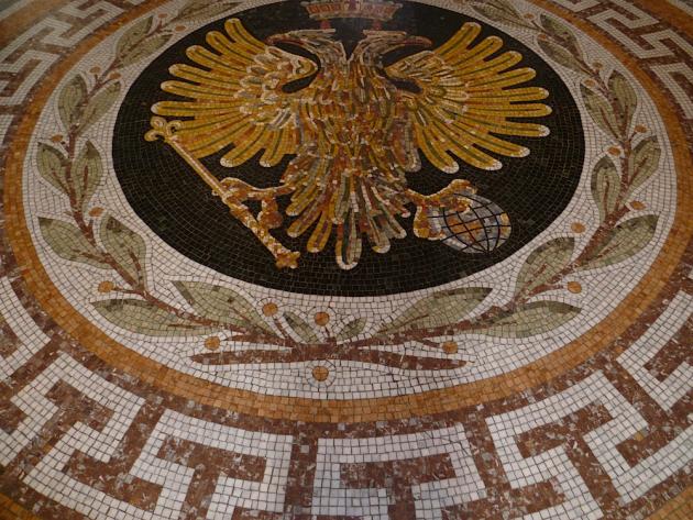 Двоголовий орел став символом Візантії та означав втілену у Христі двоєдність царської й архієрейської влад.