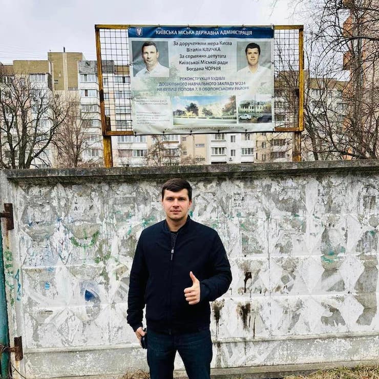 Будівництво дитсадка на вулиці Попова було однією з передвиборчих обіцянок депутата від партії «Удар» Богдана Чорнія. З 2012 року він обіймав керівні посади у Київському інвестиційному агентстві, зокрема й очолював його деякий час у 2020-му. Він не єдиний торкався теми дитсадка — «докласти зусиль» обіцяв, наприклад, депутат Владислав Трубіцин, який зараз перебуває в розшуку.