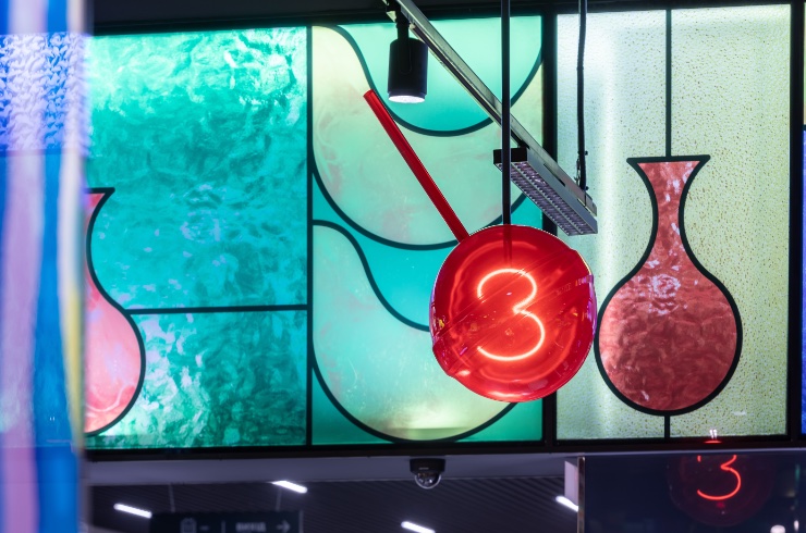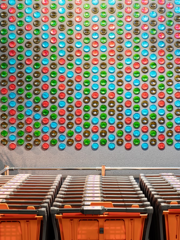 Новий супермаркет став осередком мистецтва склодувів, щоб під час походу за покупками гості могли насолодитись грою кольорів та світла. У торговому залі можна помітити склодува за роботою, ремісничі інструменти, що століттями майже не змінювалися, та навіть гутну піч, в якій пісок перетворюється на скляні вироби.