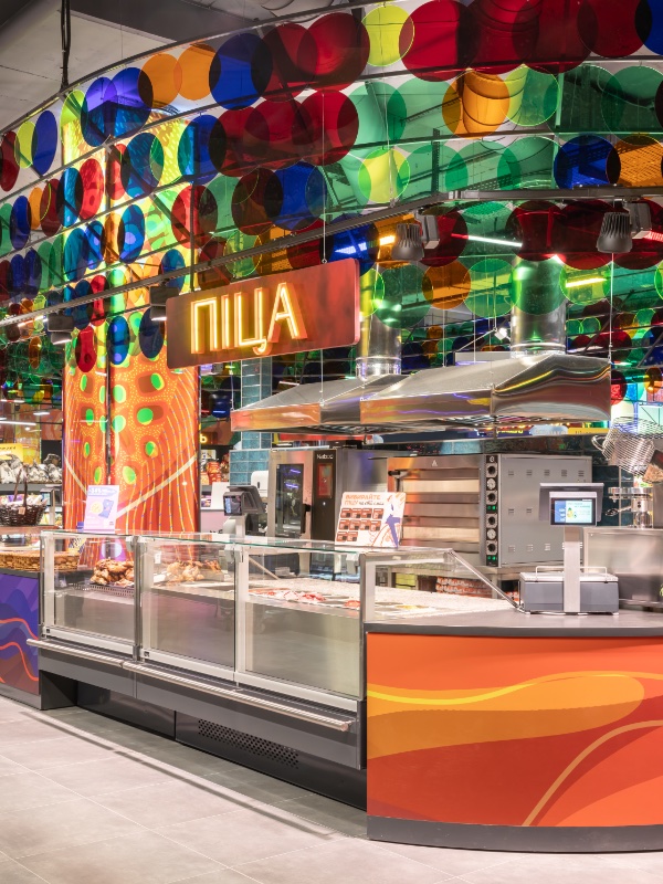 Новий супермаркет прикрашений виробами із кольорового скла.