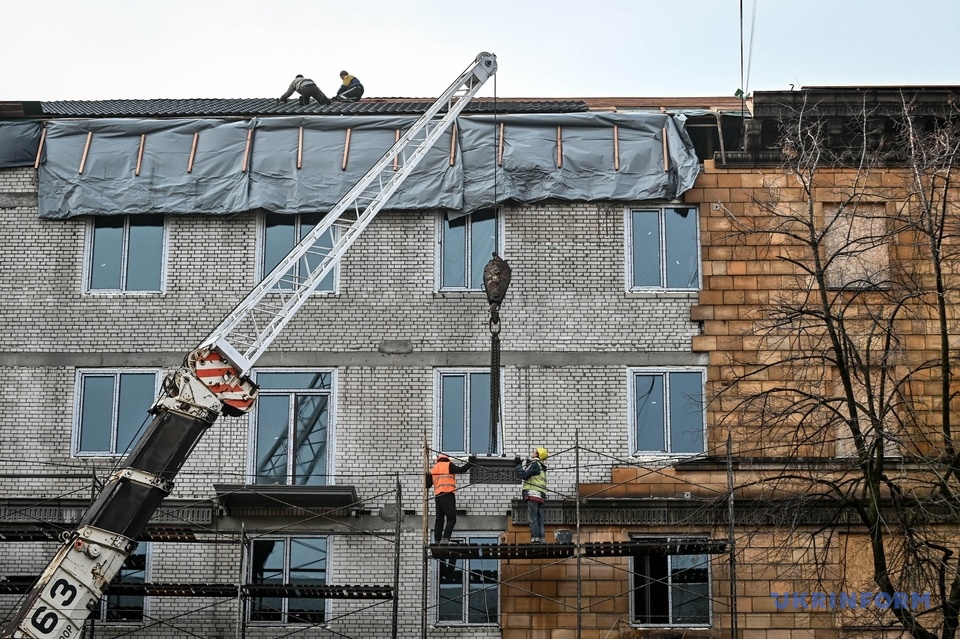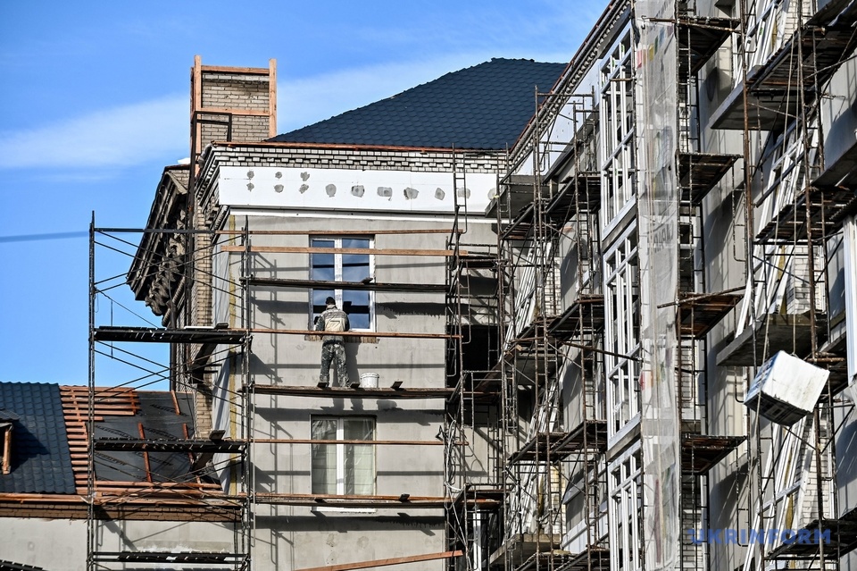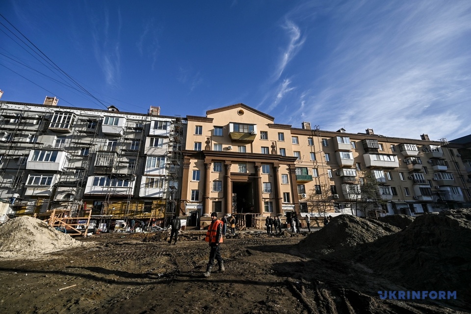 Зруйнований підʼїзд вже відбудували та почали облицьовувати його фасад. Представник підрядника Євген Ковальов розповідає, що плитку з шамотної глини було дуже важко виготовити, оскільки Словʼянськ – це єдине місце, де її можна знайти, а у місті постійно перебої зі світлом та водою.