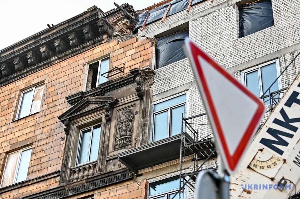 «Сталінка» є пам’яткою архітектури містобудування та знаходиться на центральному проспекті Запоріжжя. Минулого року внаслідок ракетної атаки було зруйновано один з підʼїздів будинку, який був облицьований унікальною глиняною плиткою.