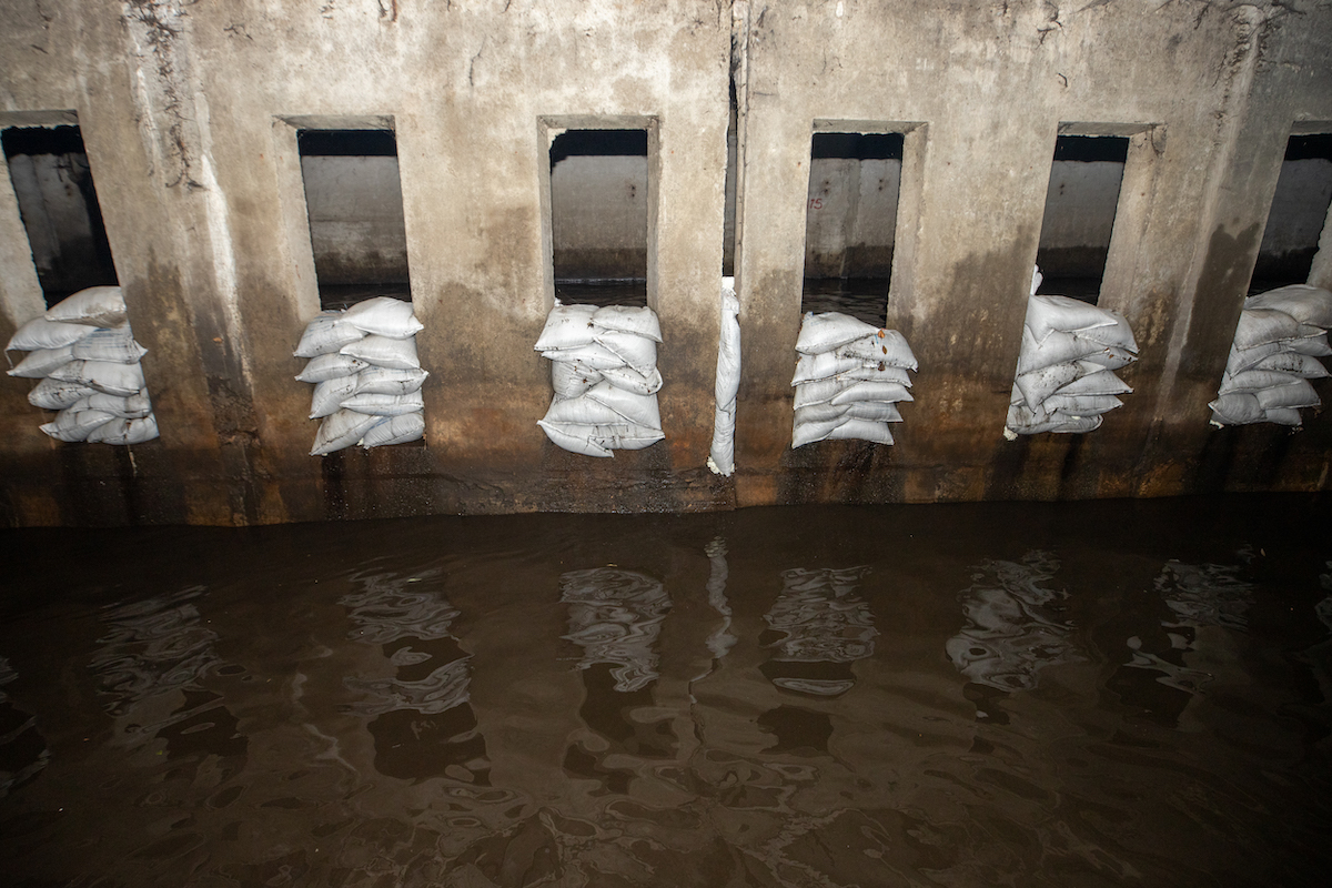 Це зробили, щоб запобігти підтопленням навесні. Щоб зайти в підземну частину, воду з річища повернули на променаду й огородили дамбою з мішків та піску.