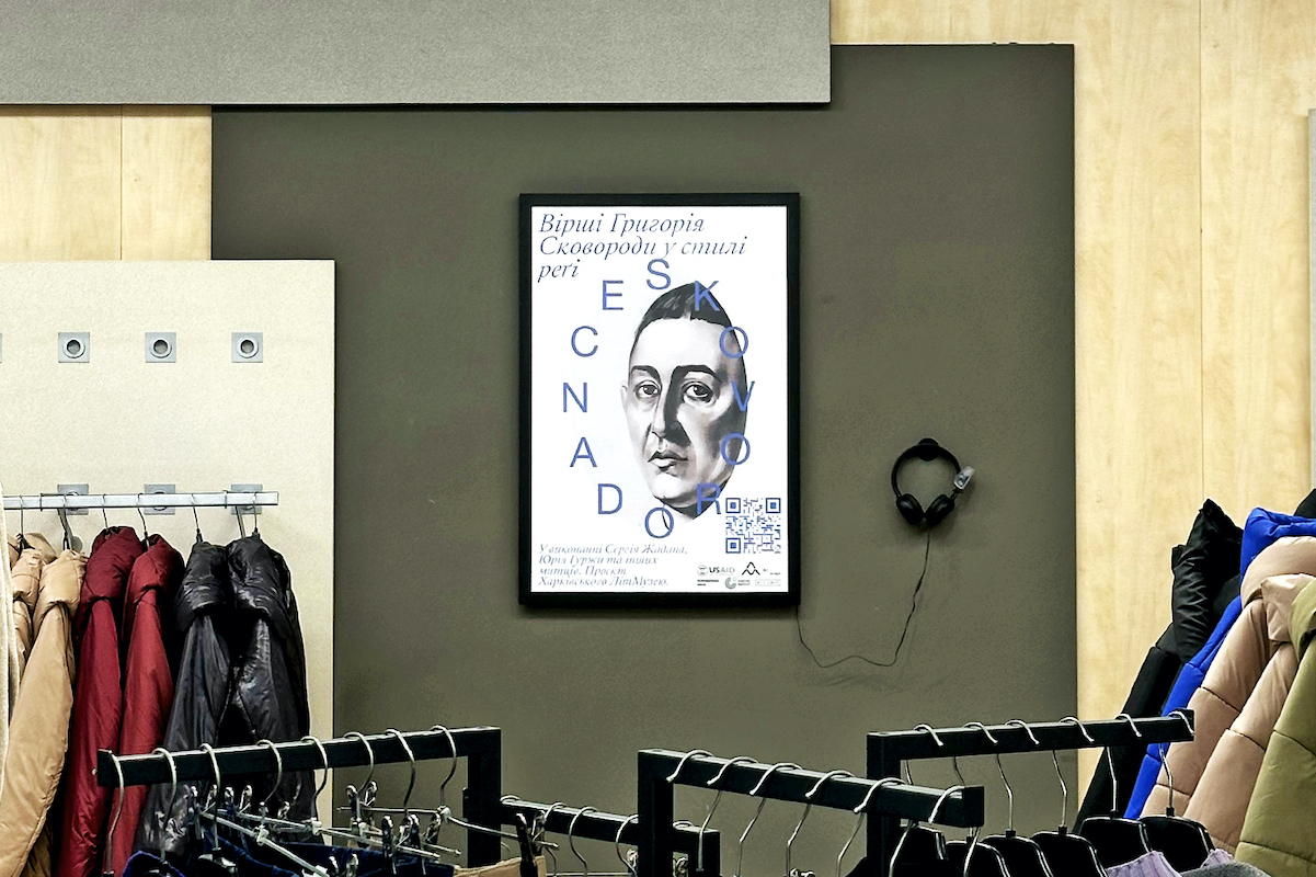 В оформленні вітрин використали не лише тексти, але й малюнки Сковороди. Крім того, можна помітити й цитату з тексту Сергія Жадана, написаного спеціально для альбому SKOVORODANCE.
